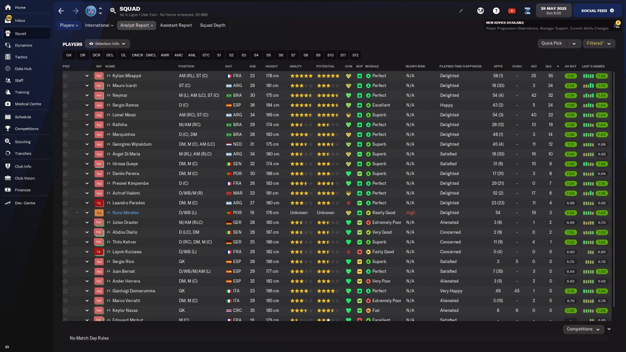 - Changed IWBR to a CWB for PSG (to get most out of Hakimi)