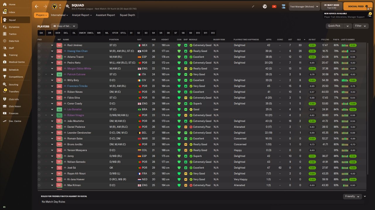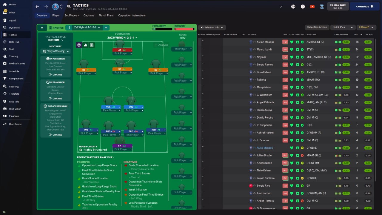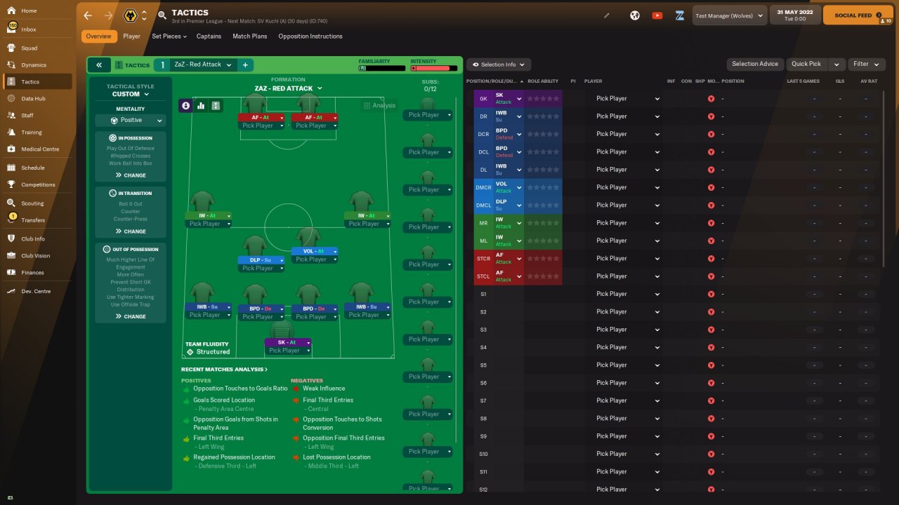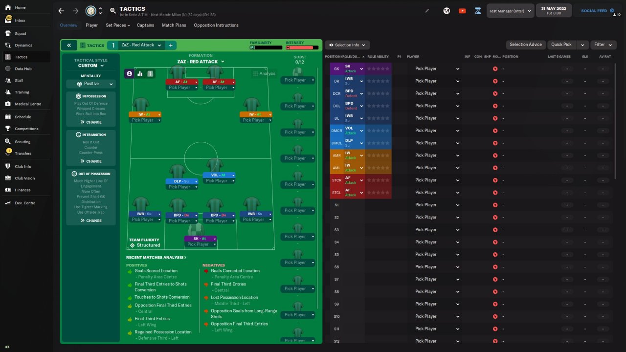 - Changed the left WB to an inverted wingback (with the two SV's pushing forwards i wanted an extra man at the back in the defensive half spaces)