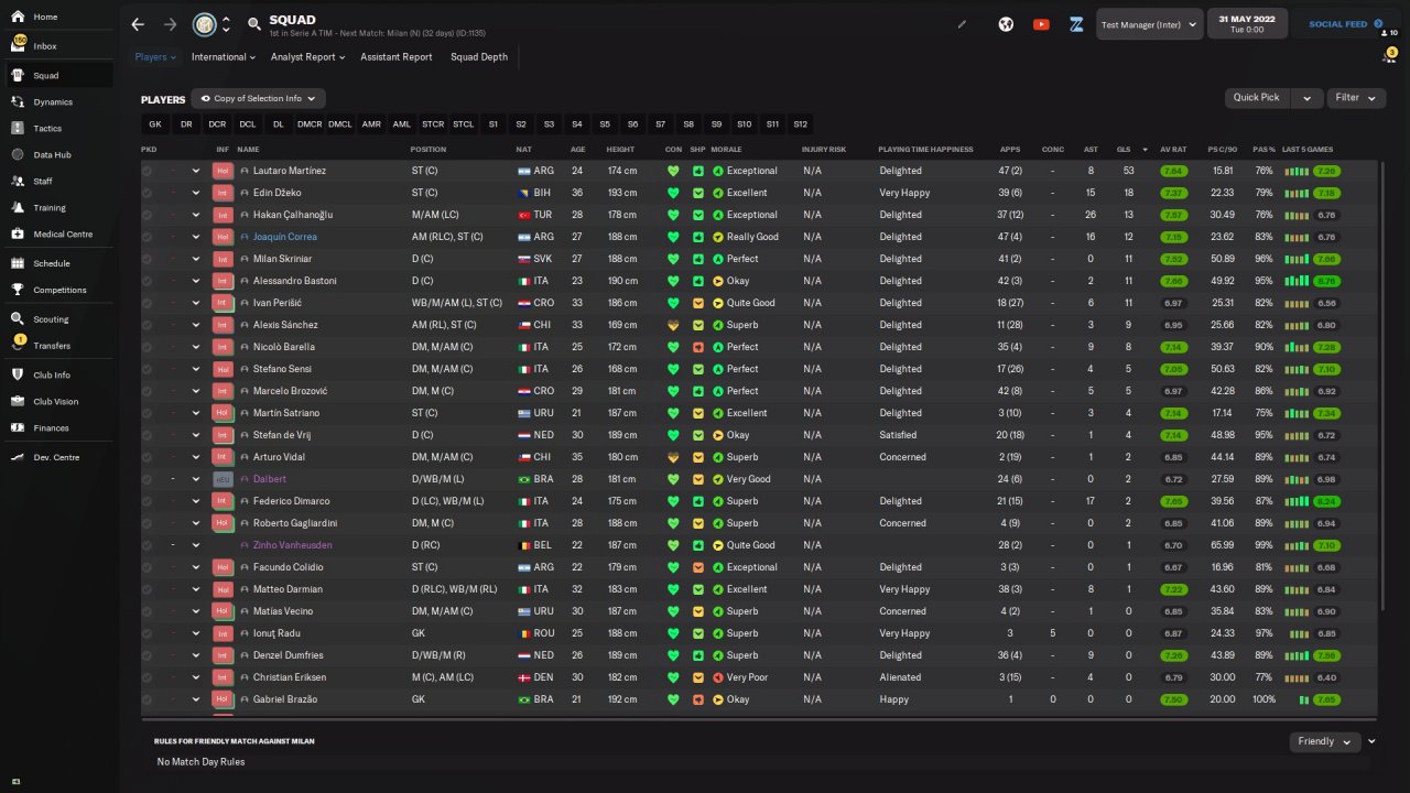 As you can see plenty of goals spread out the team and two players getting 40+ assists which i havent had before. Some great average ratings and some absolute demolishing scorelines to go with.