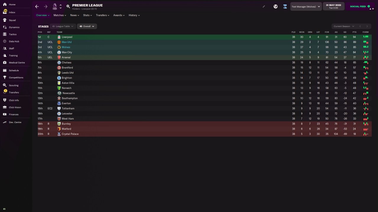 I carried the test out with Porto, Manchester united, Wolves, Bayern, Leipzig, Napoli, Inter Milan, Salzburg, PSG and Atleitco with a title bieng won by every team apart from Manchester United who choaked on the last two games haha typical real life form atm