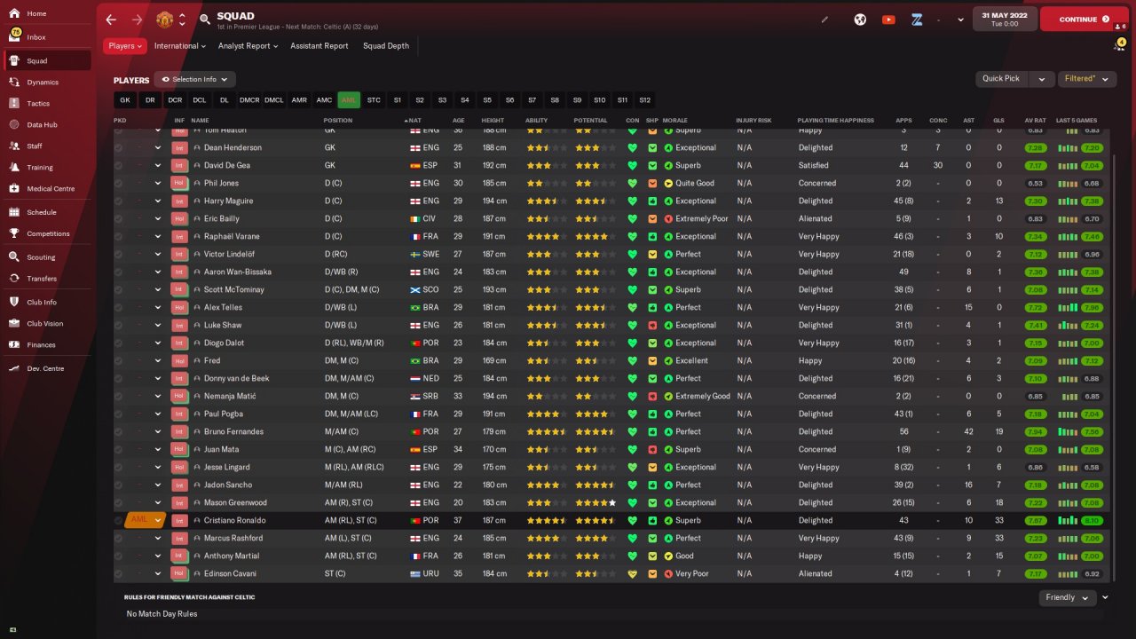 For the first test i holiday simulated the full first season with 5 teams ( MAnchester United, Paris Saint Germain, Juventus, Real Madrid & Bayern Munich and i also included Portugal national team aswell to see how it could fare on an international level. )
