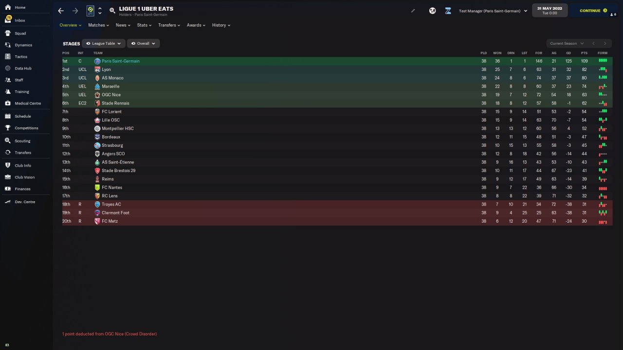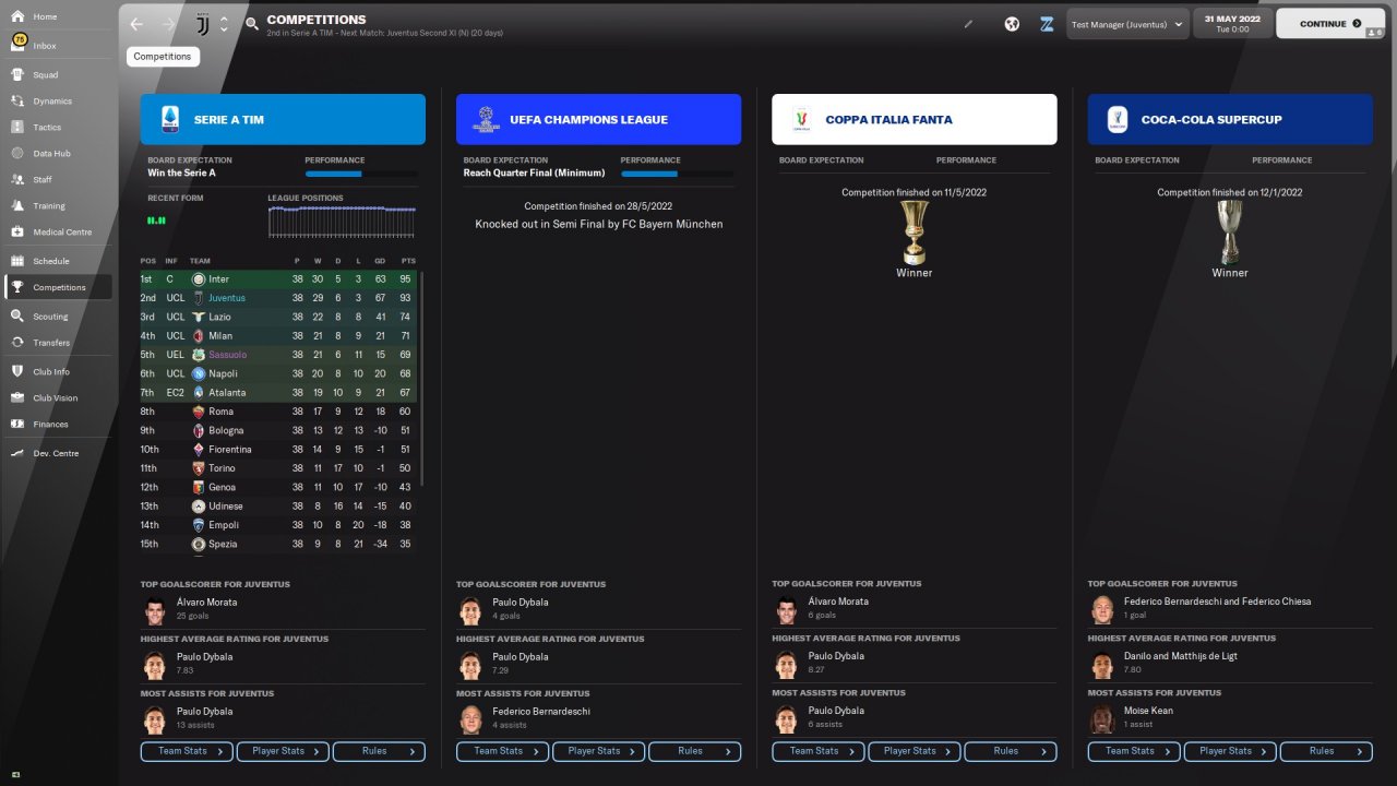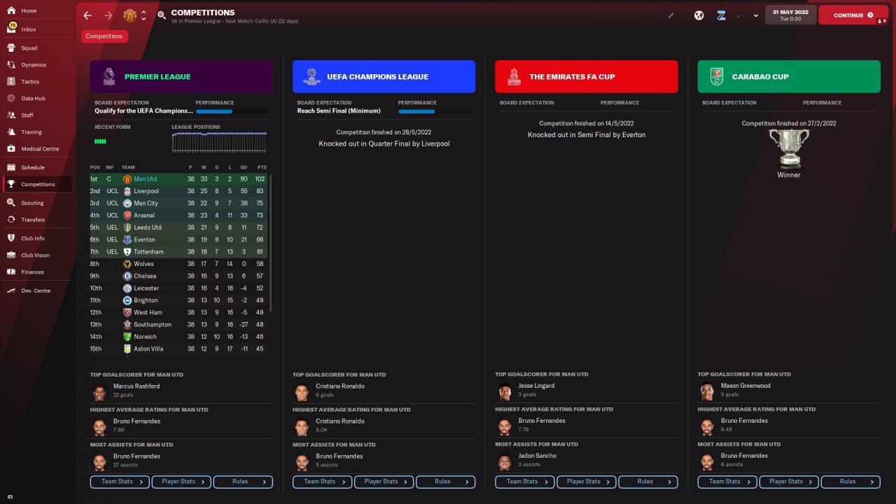 Unfortunately we had a wobble against Bayern Munich which sent us into the Europa League which we went on to win along with every other competetion as expected.