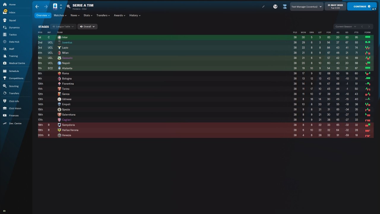 - First place with every team apart from Juventus who narrowly lost out to Inter who had an astonishing season