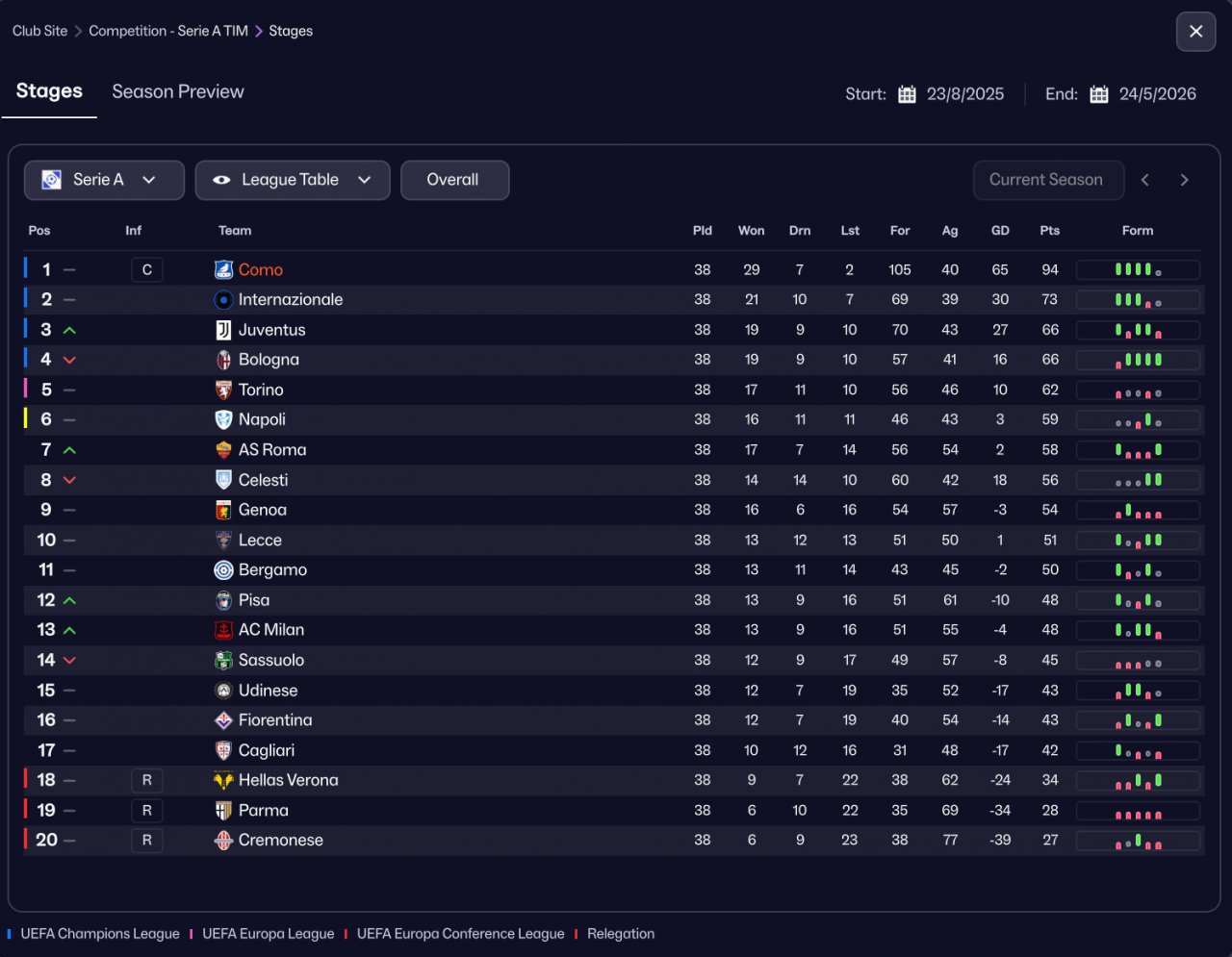 | PTS | GD | GF | GA | PLD |