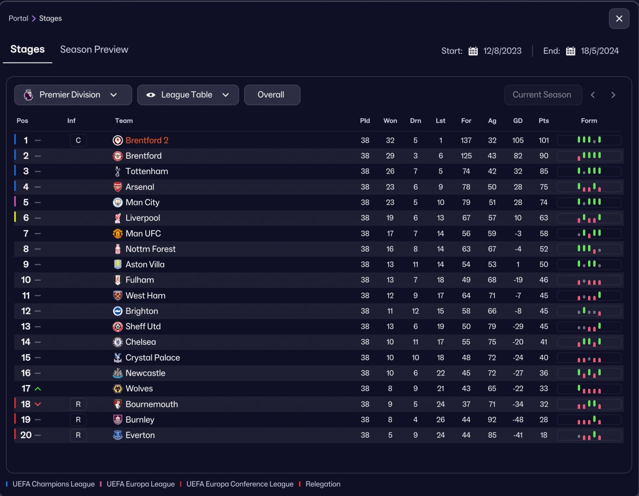 | xG Diff. | xG For | xG Against |