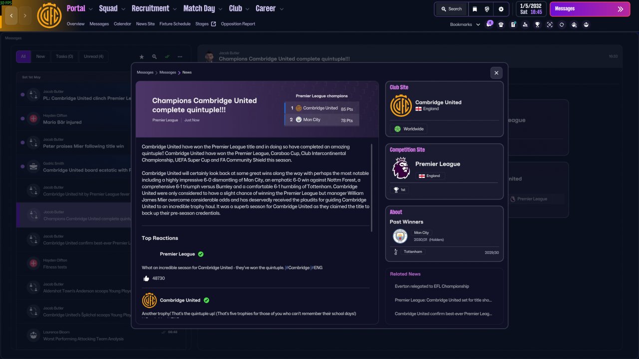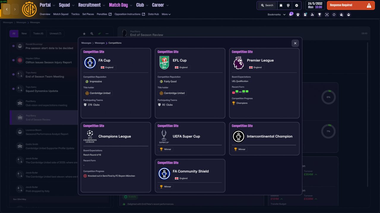 C. Six Trophies in 2032! (Could have been 7 if only not due to injury and fitness because of tight schedule late to the season.)