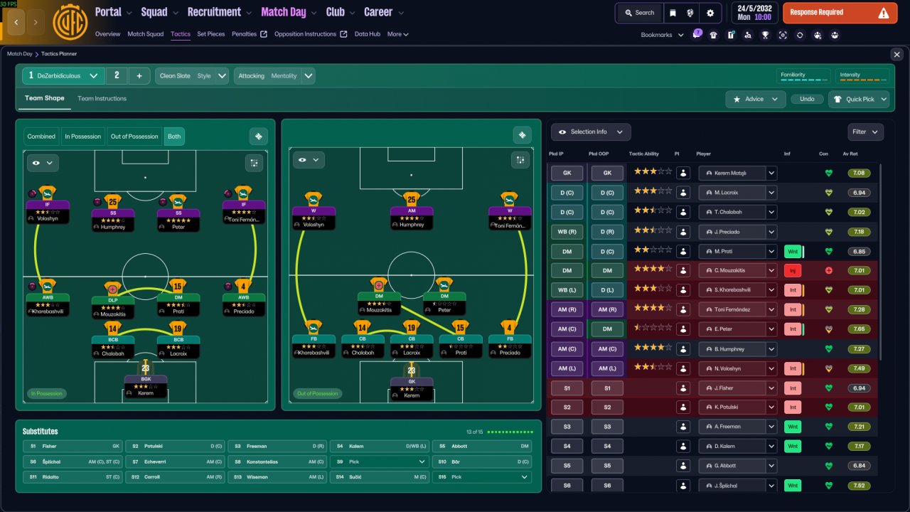 E. AMC don't need high rating in dribbling since his job is to hold and quickly switch to flanks or through balls. (My 10 dribbling rated player has 30+ goals!)