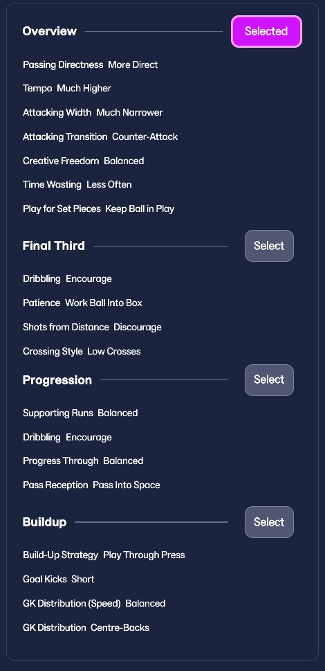 -High tempo, counter football, direct passing, narrow