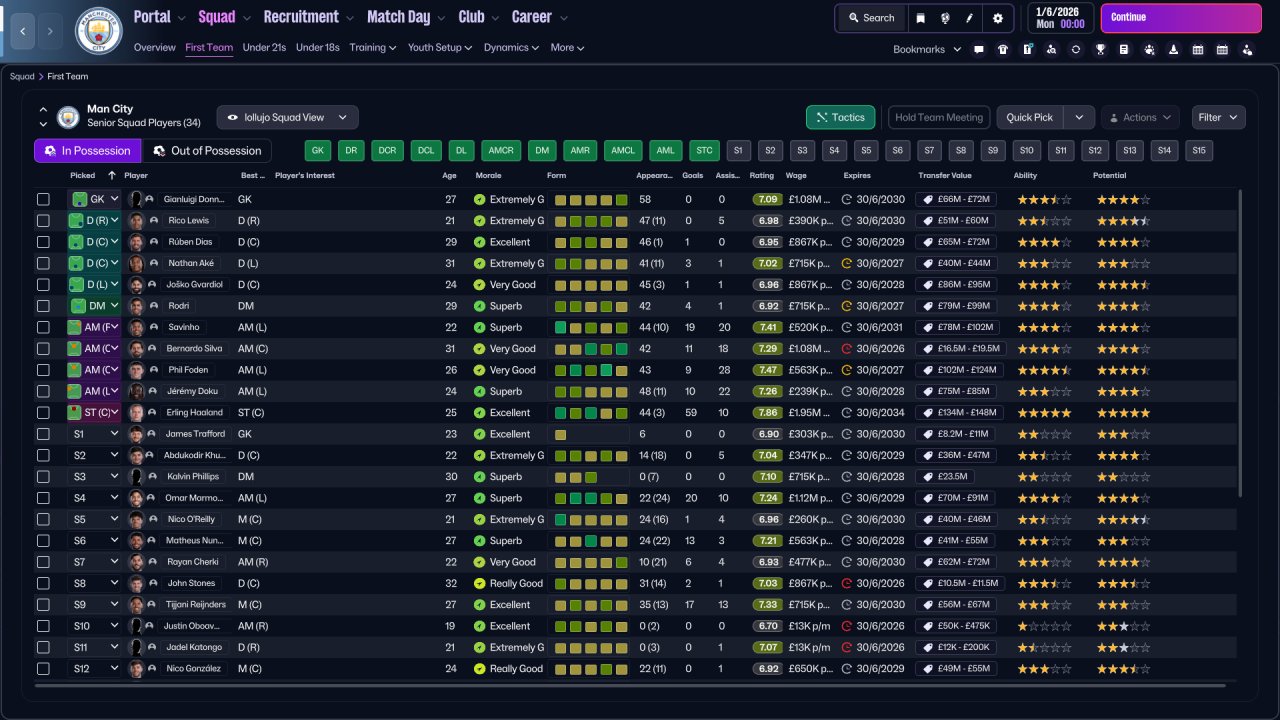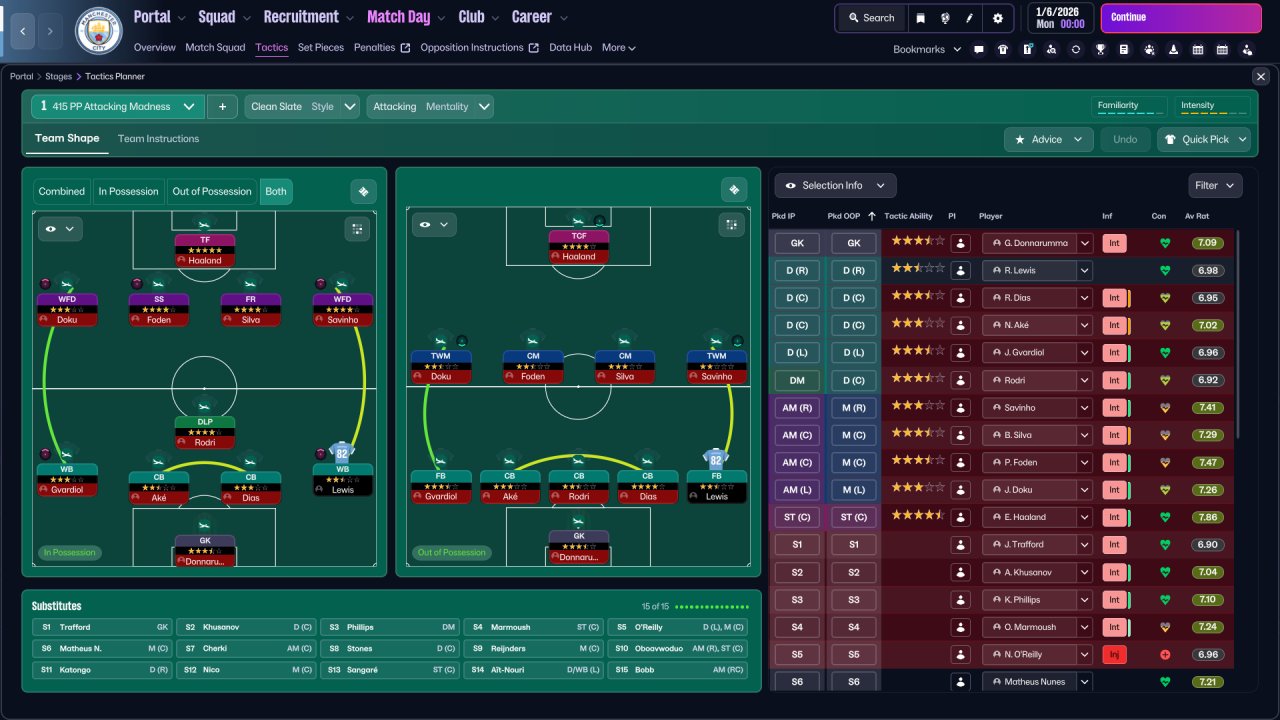 Tested with man city. 4-1-4-1 Formation in possesion and 5-4-1 out of possesion