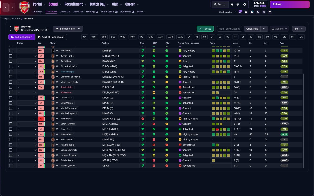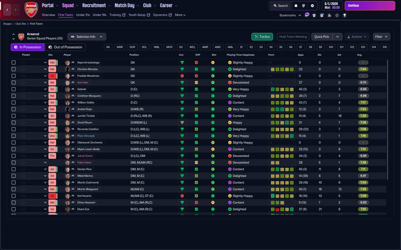 Nocrel said: Hey thanks a lot for the work and the share ! Would it be possible to see, for example with arsenal what would be your 11 starter to see the kind of profile working for this tactic ?