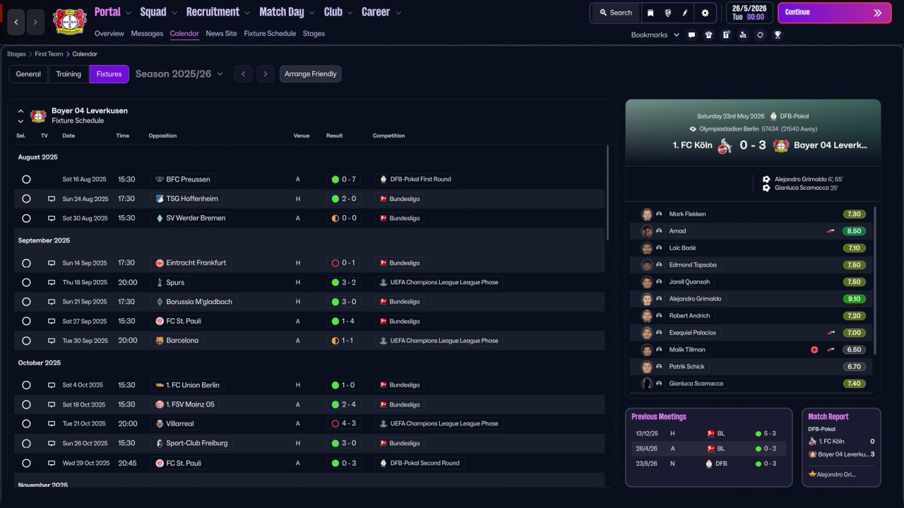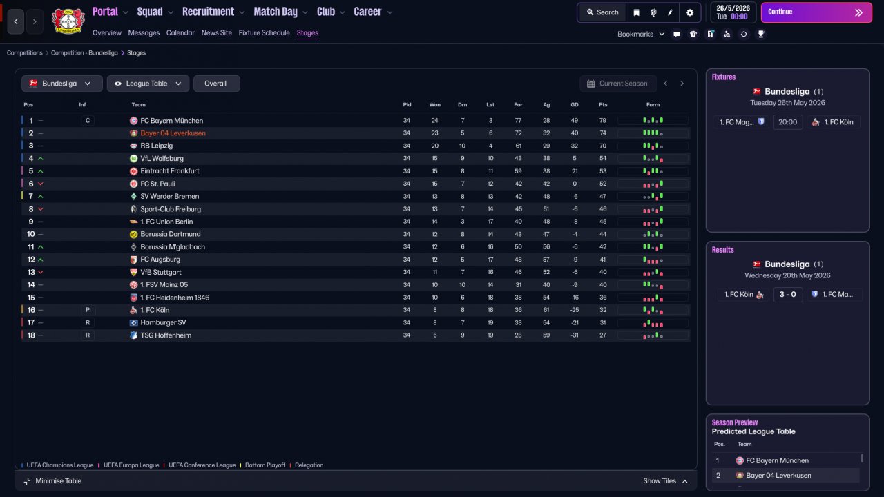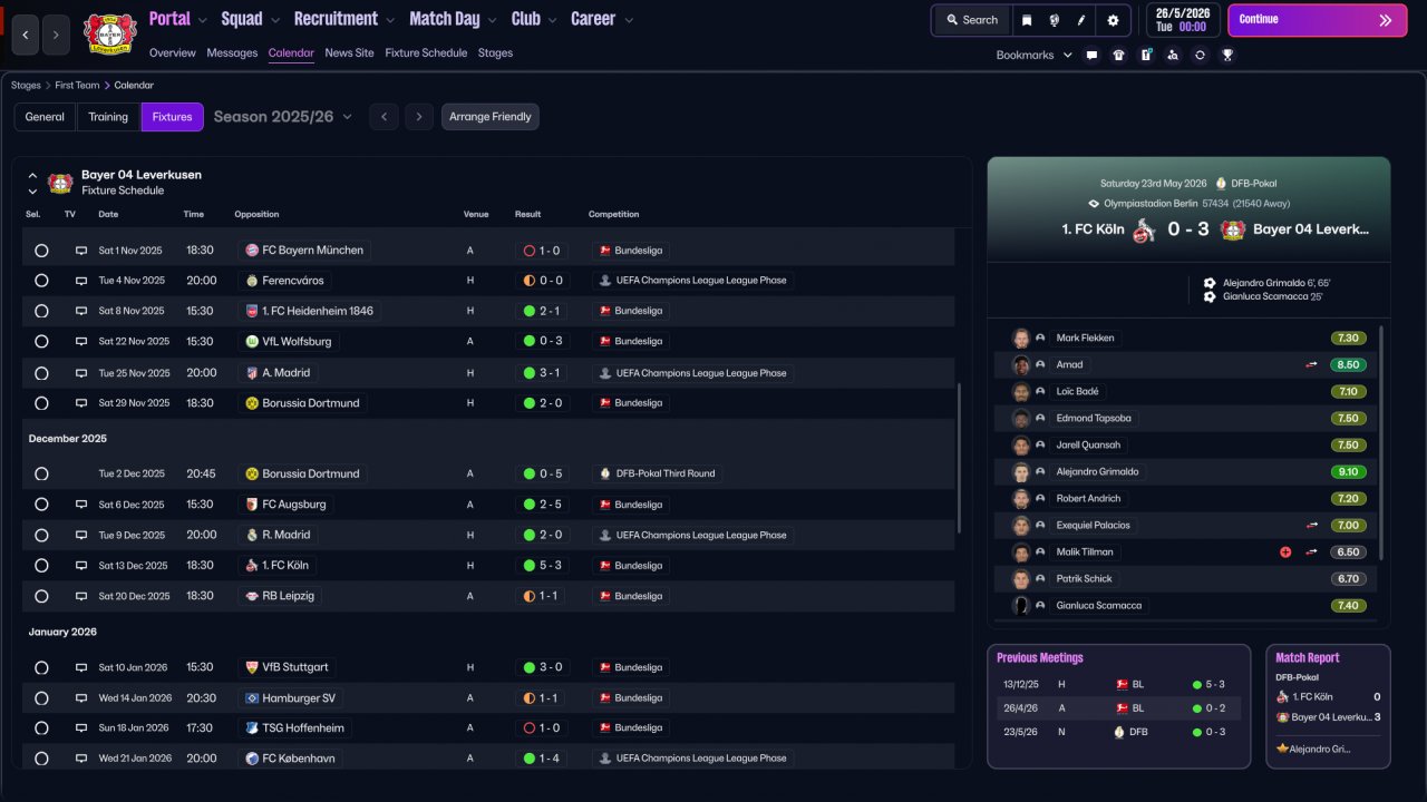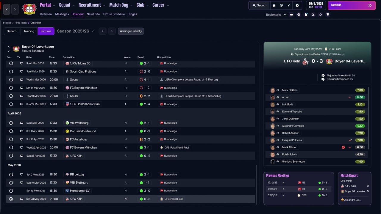 I tried this tactic and played one season with Leverkusen. I bought Amad from United. In this tactic, the wing-back is the most important role and must have high pace and good technique. I finished 2nd in the Bundesliga. Since the season was only simulated, the results would be even better with real gameplay. However, for this tactic to work properly, the team needs to be dynamic and your rotation players also need to be suitable for the tactic.
