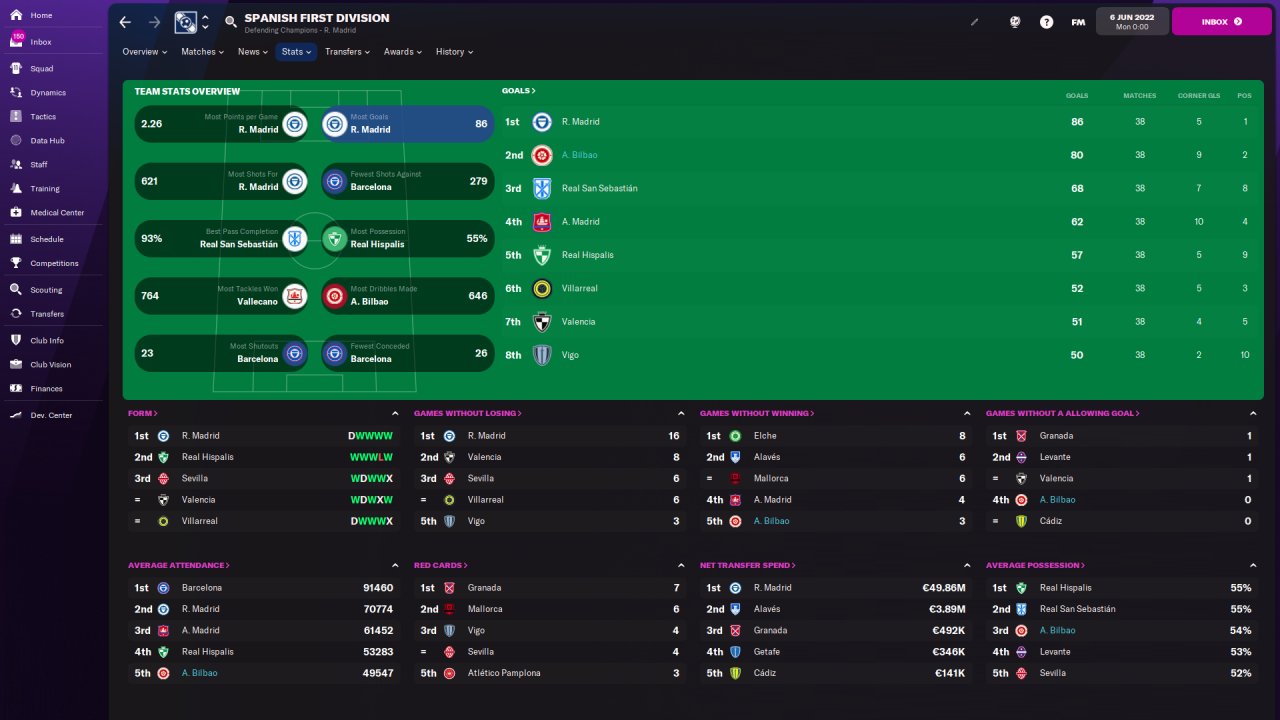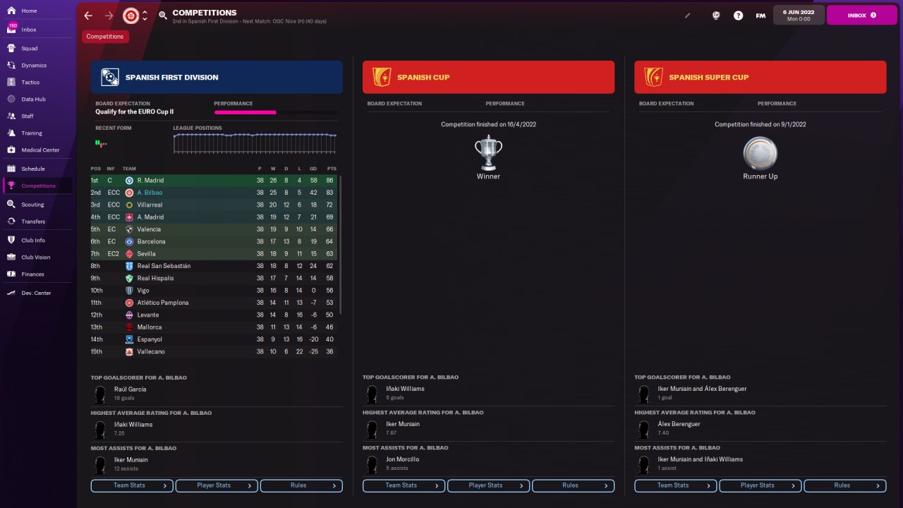No player bought, holiday mode for one season. Lost the title after 2 home draws against weaker teams. Instead we won the Spanish Cup.