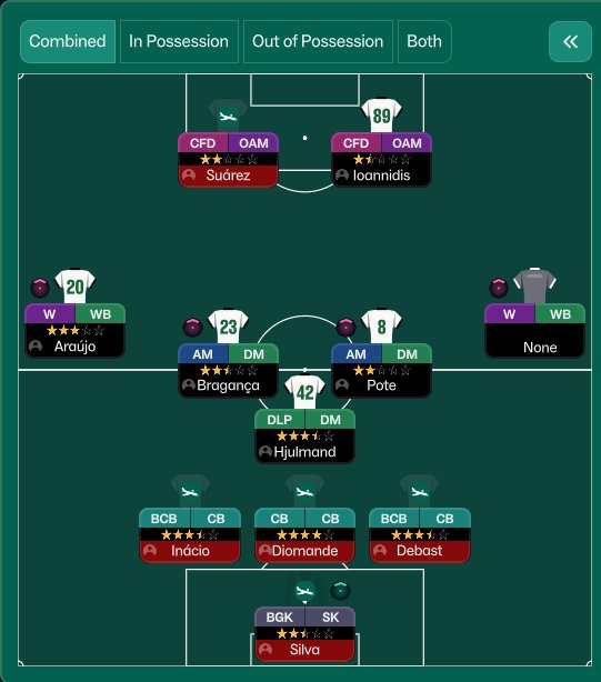 3-5-2 with Direct passing but a low tempo