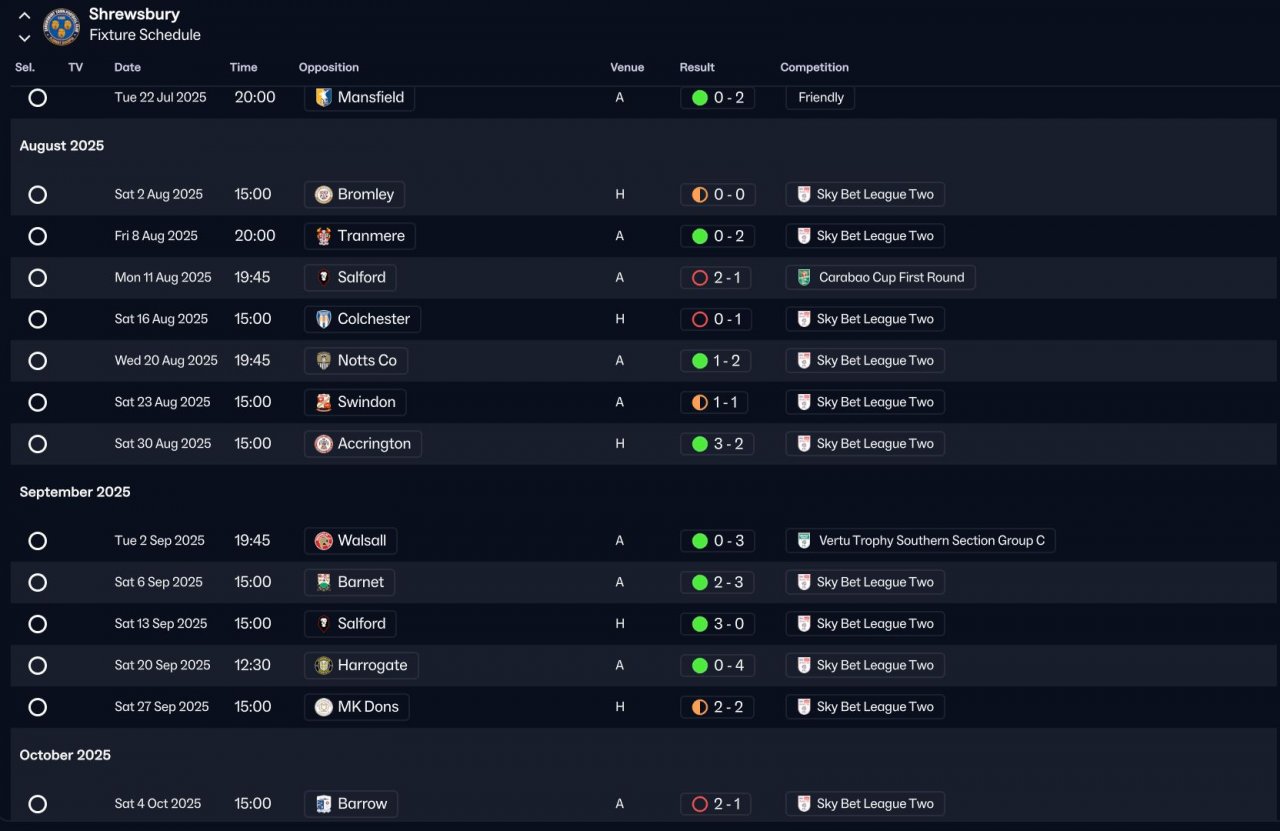 I am using the same testing structure as my previous tests, 1 unfancied team from each English Division from Enterprise South through to EPL. These are holiday tests with no transfers.