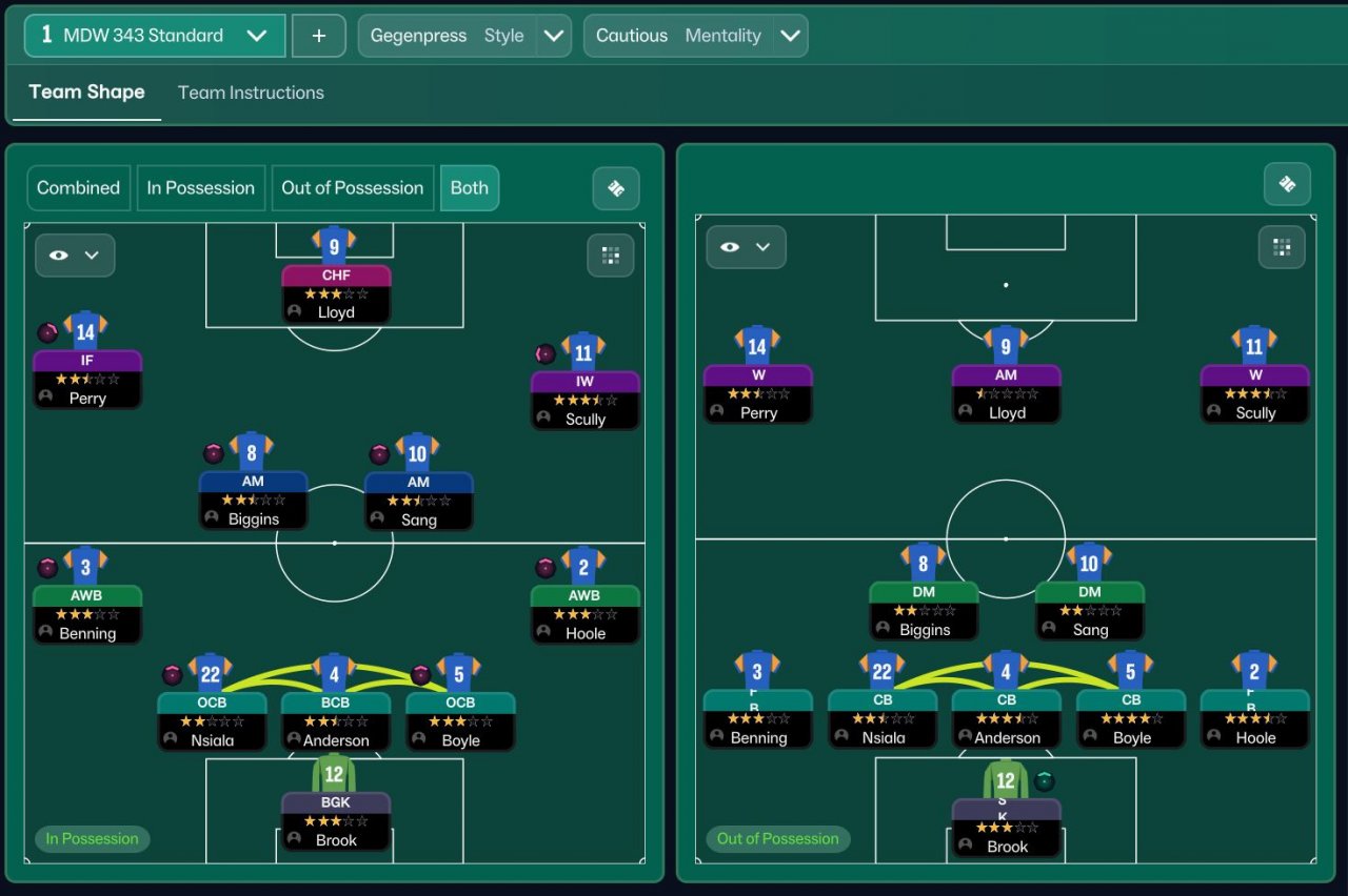 This is the Cautious version of my Mentality testing of a striker tactic based on Argus without PIs.