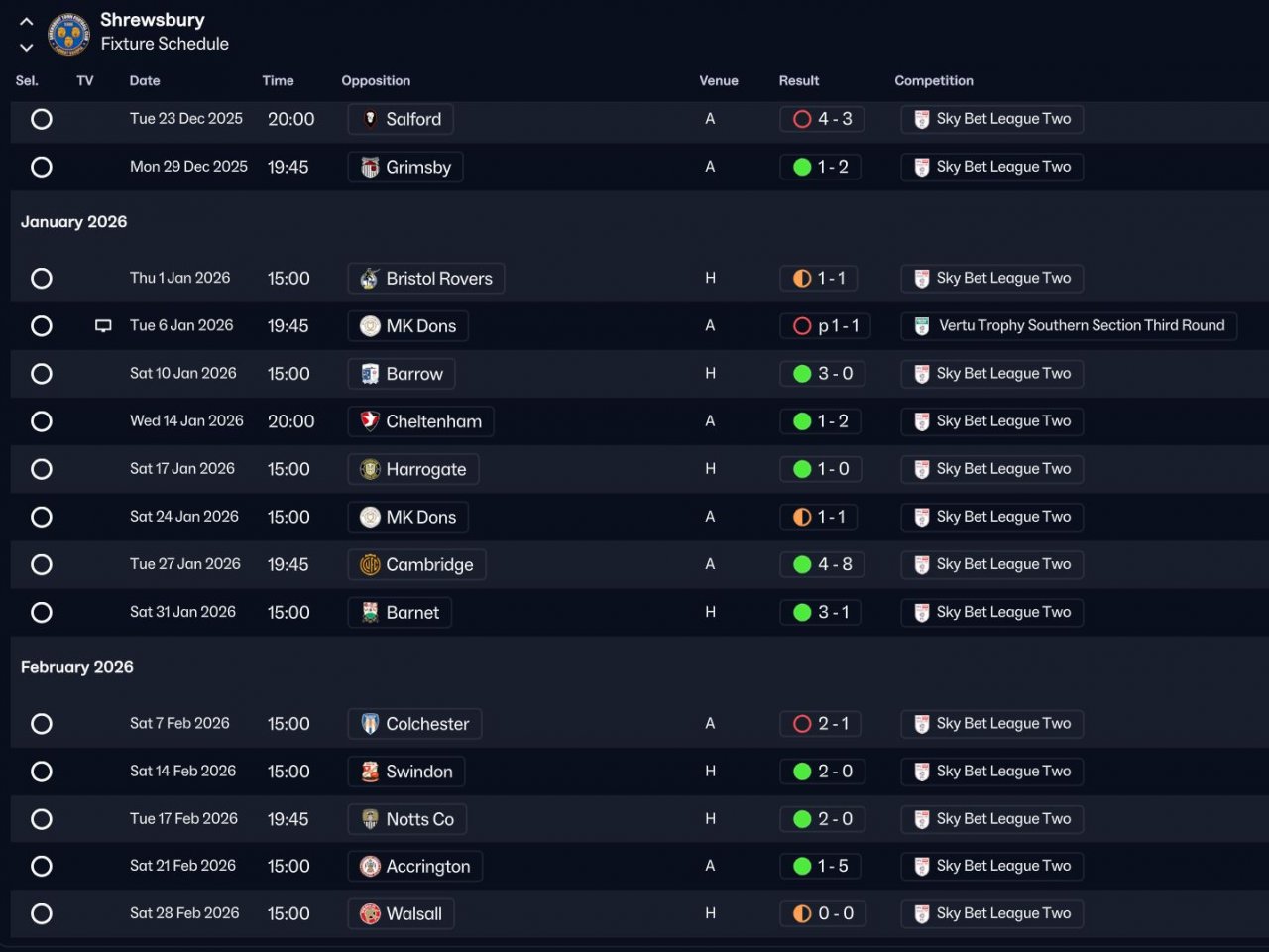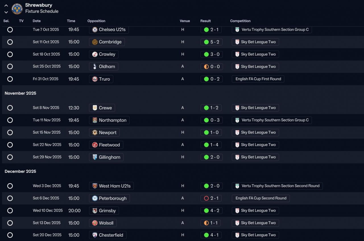 I am using the same testing structure as my previous tests, 1 unfancied team from each English Division from Enterprise South through to EPL. These are holiday tests with no transfers.