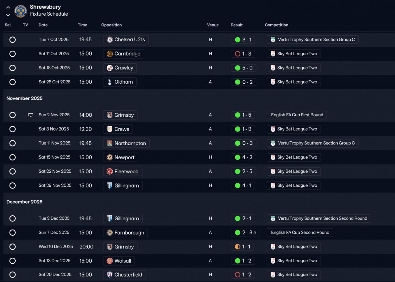 I am using the same testing structure as my previous tests, 1 unfancied team from each English Division from Enterprise South through to EPL. These are holiday tests with no transfers.