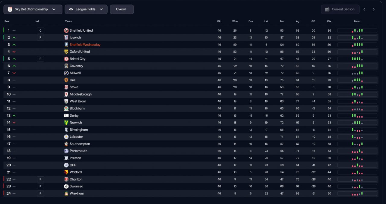 got 3rd with Sheffield Wednesday and would of comfortably won the league if it was not for the points deduction