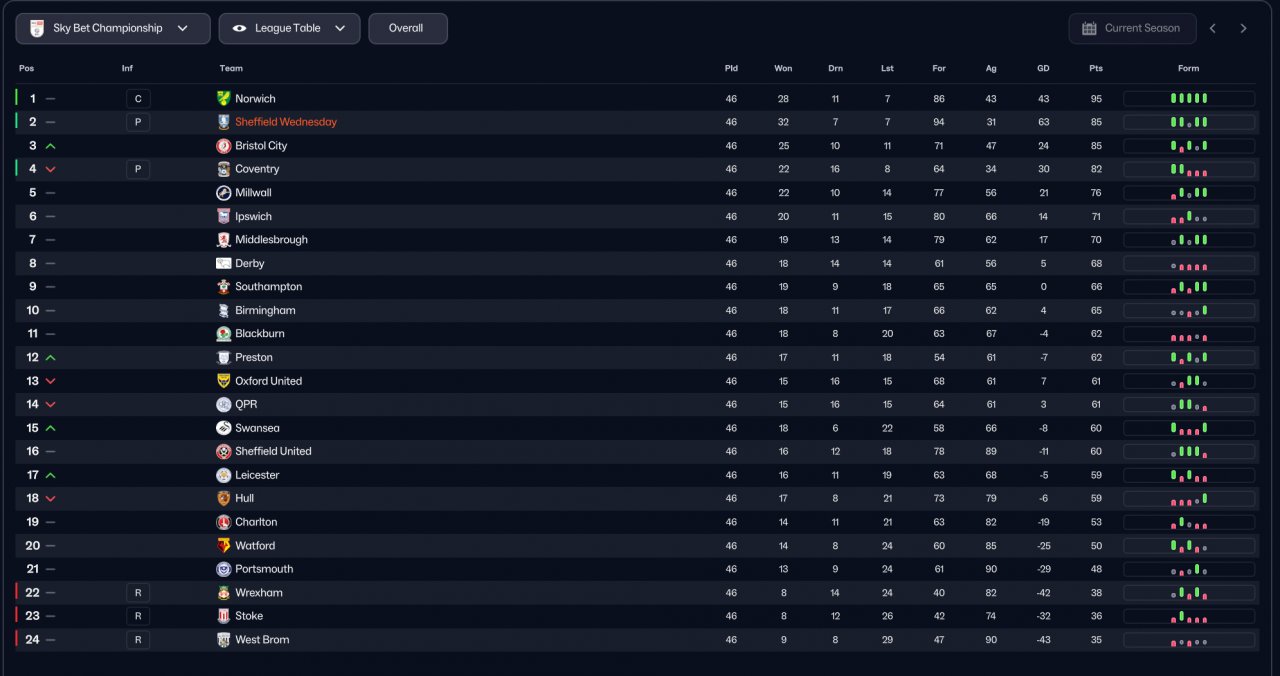 got 2nd with sheffield wednesday with points deduction