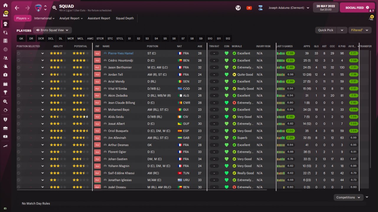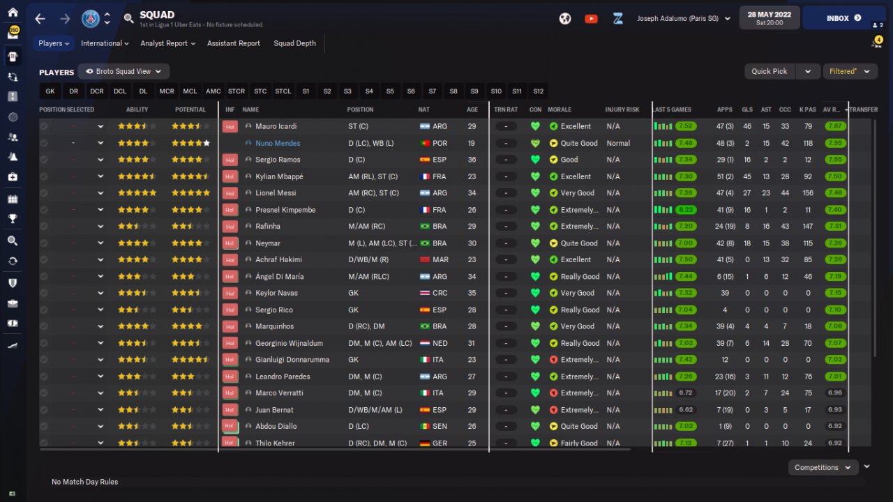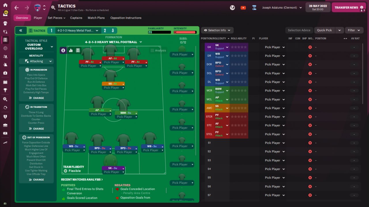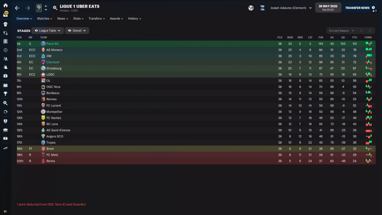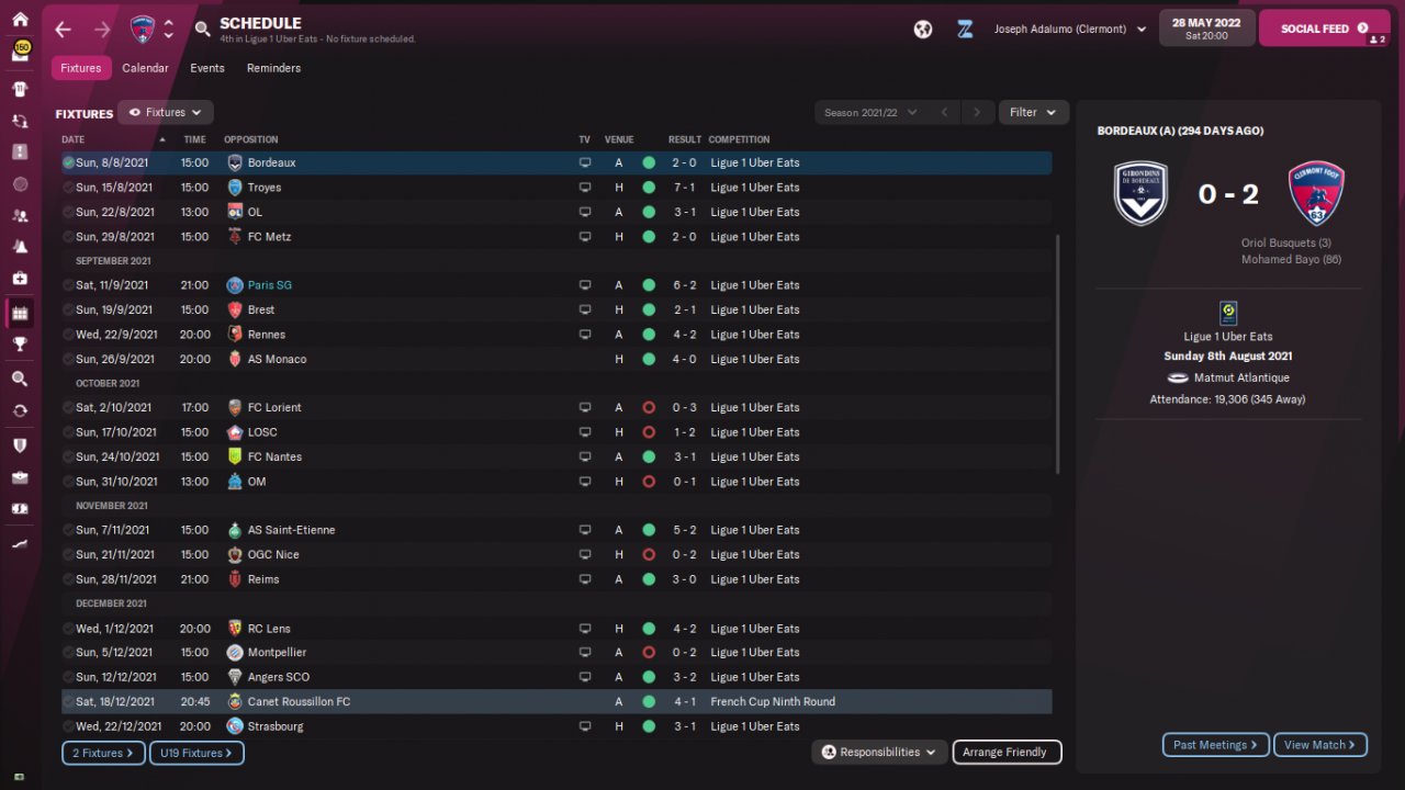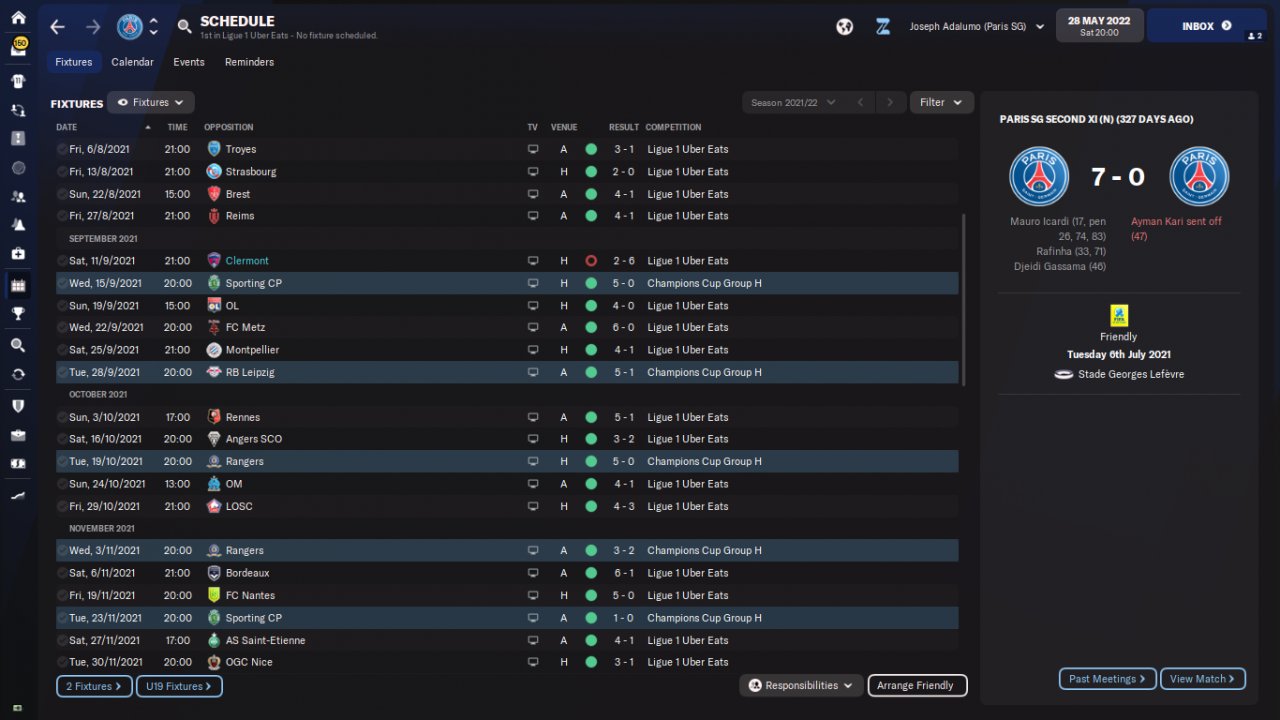 Here are some results and performance of a holiday test with PSG and Clermont, predicted 1st and 20th respectively. The tactic was just plugged in and all other decisions were up to the assistant manager, including team selection.