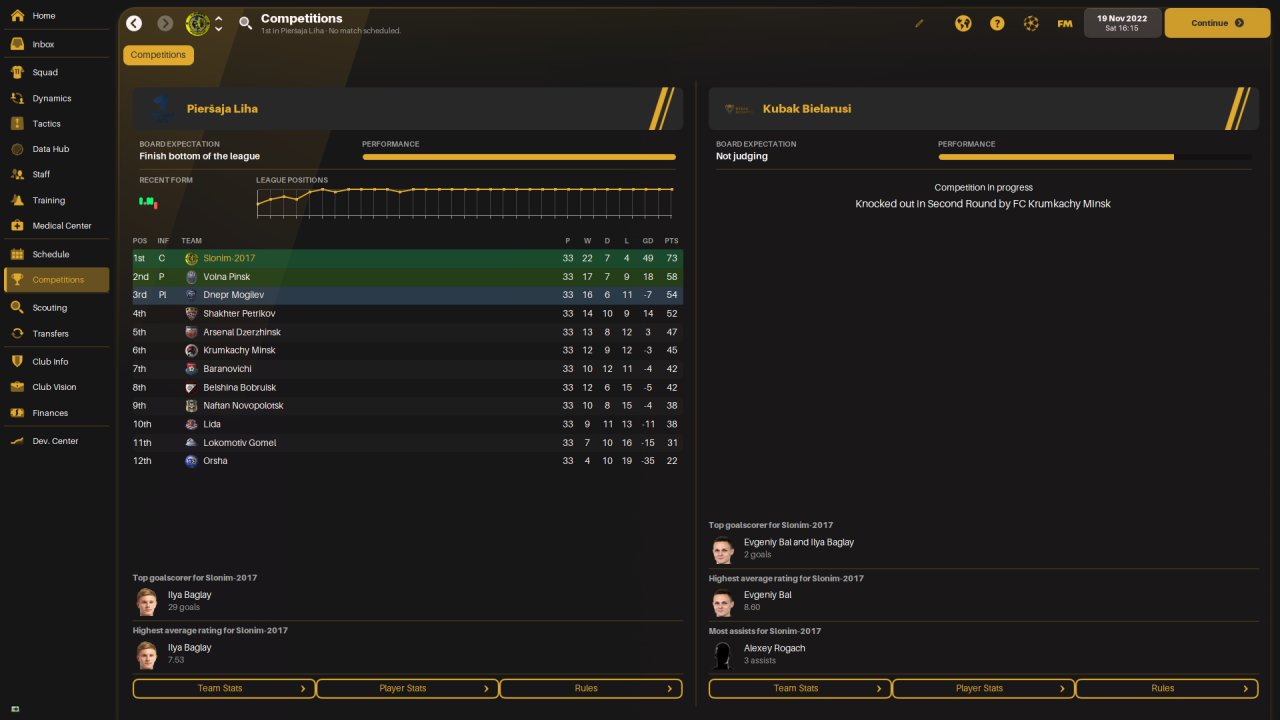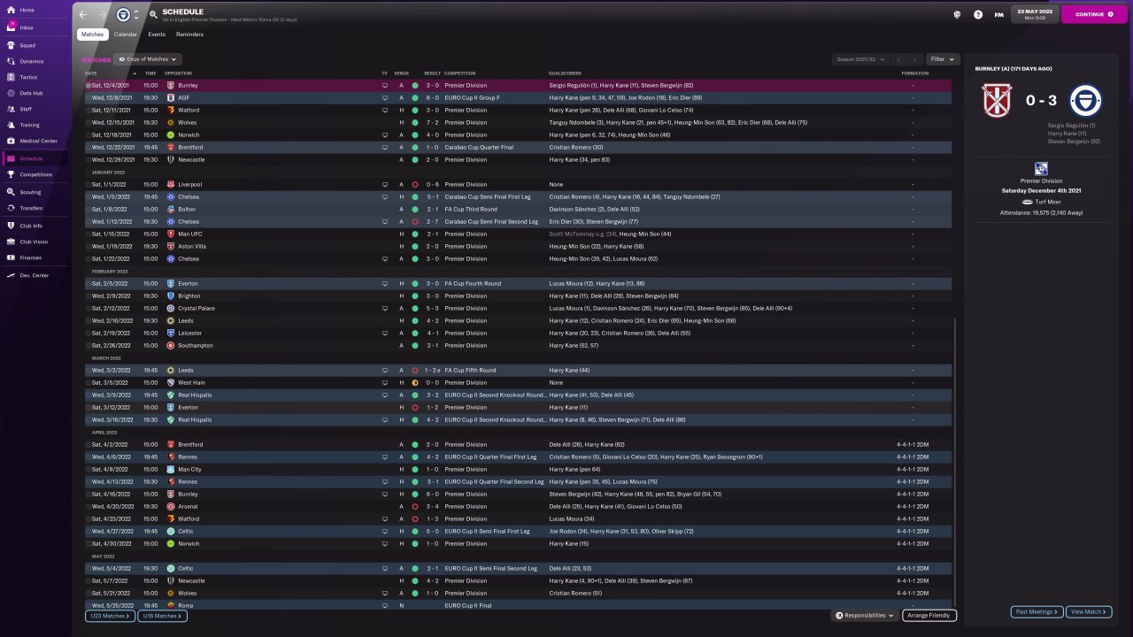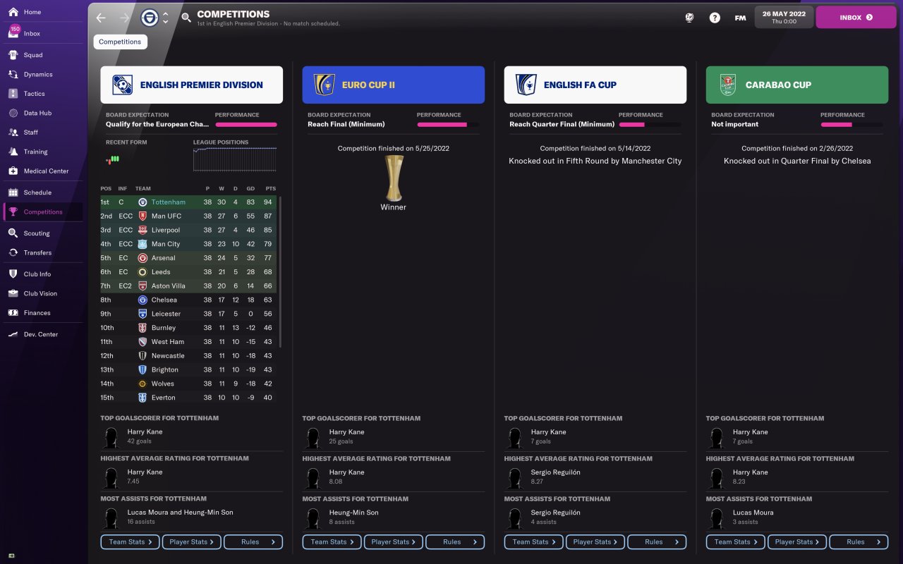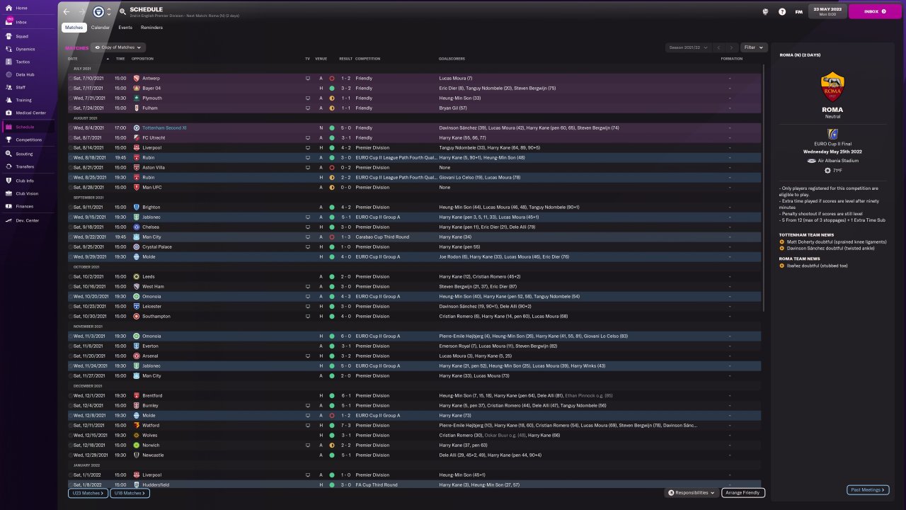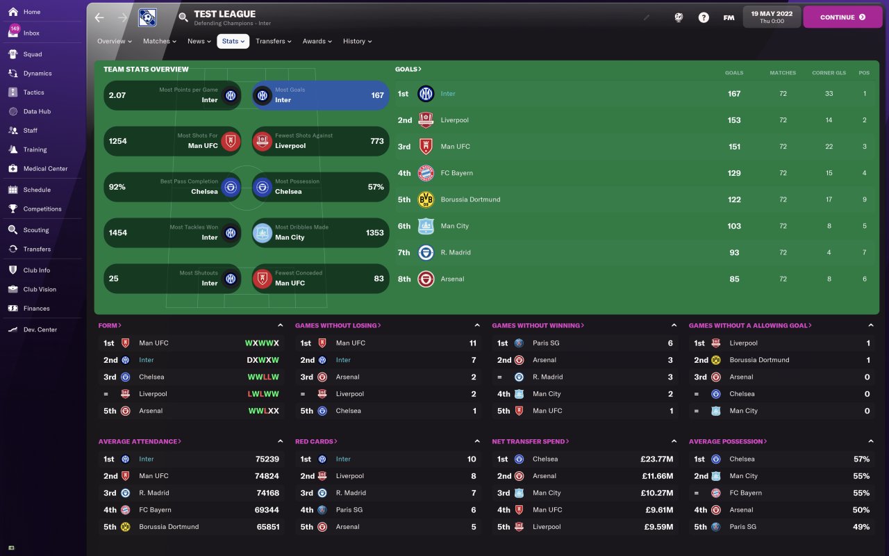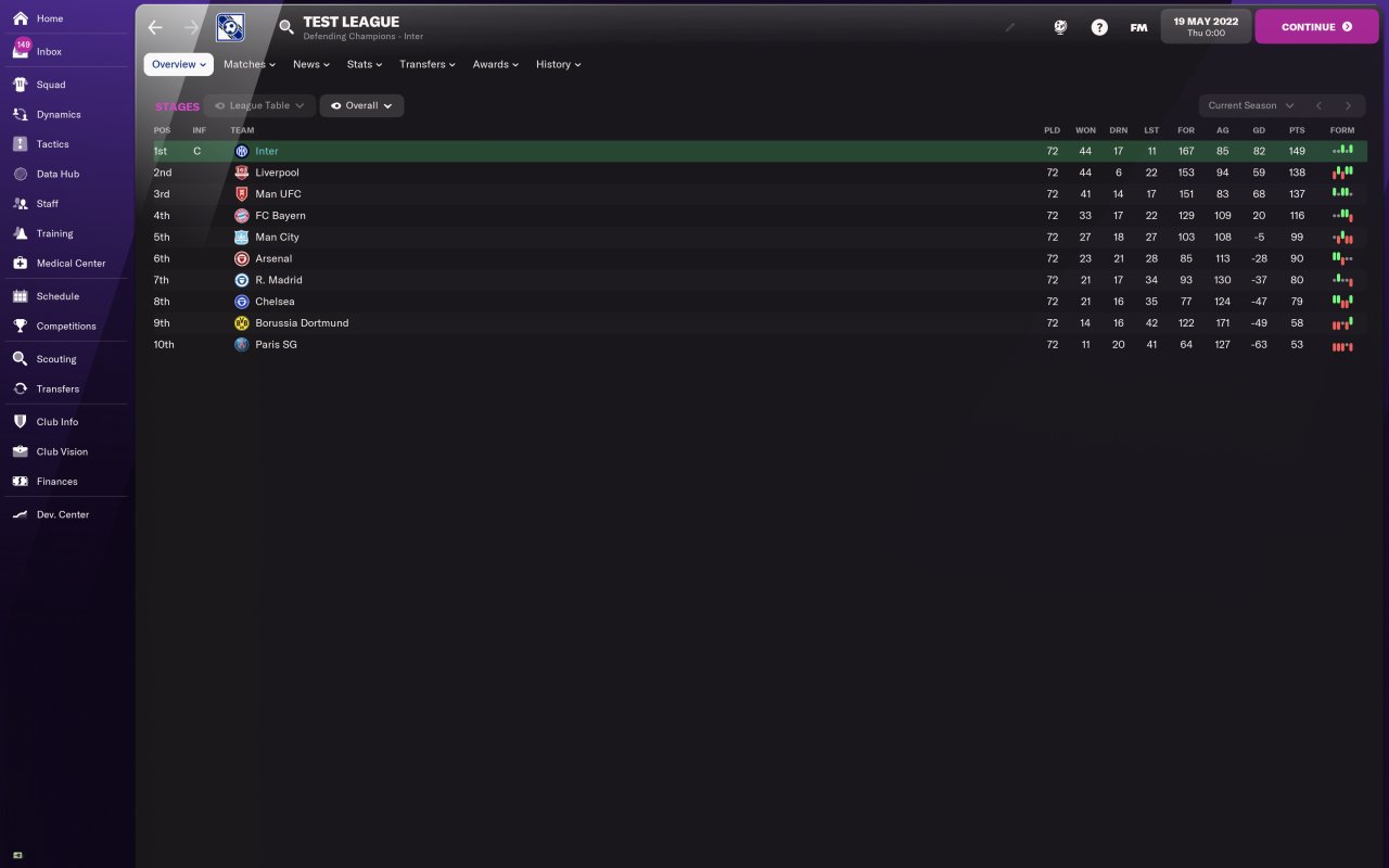 72 game season with the top 10 teams in the world, tests run with Inter. Database created in collaboration with Dino.
