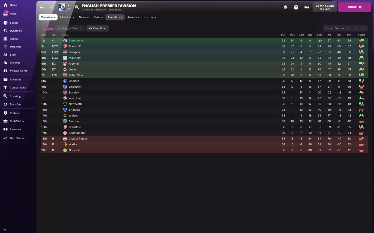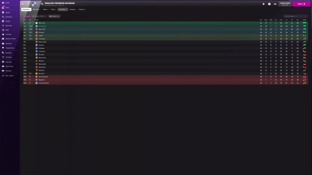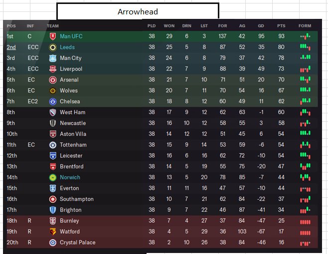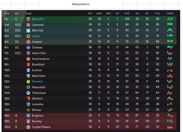 Arrowhead walked the league with Man U with ease, second place for Leeds is the best I've seen. Norwich still did better than predicted, they'd be happy with 14th.