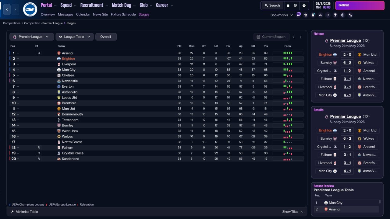 Still trying to make most of this shape. Having a lots of success with that in my main save im curious what the tests will say. Tested with Brighton on holiday, 2nd place in PL and won FA Cup. Strikers and WMs are most important players for sure.