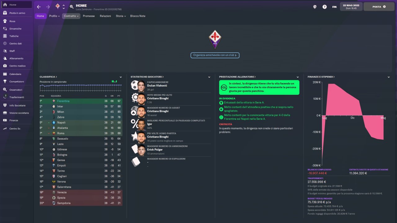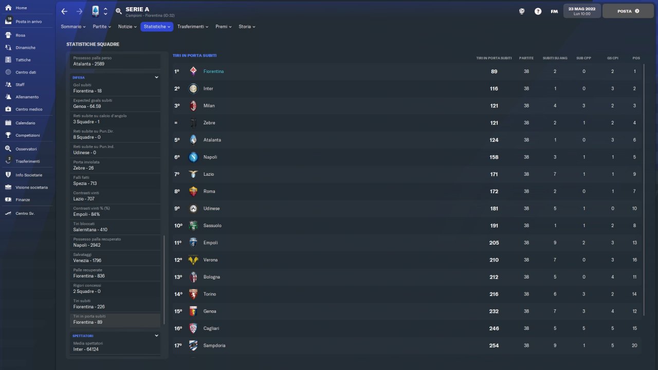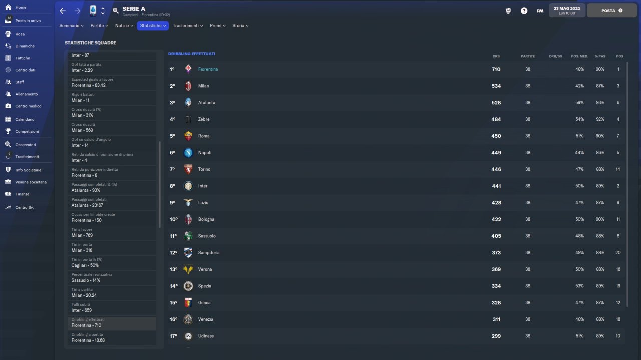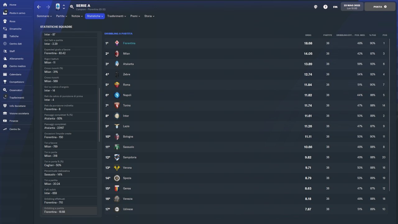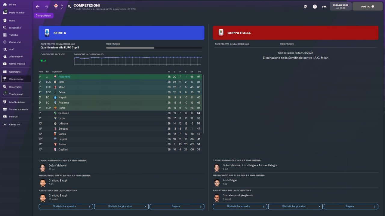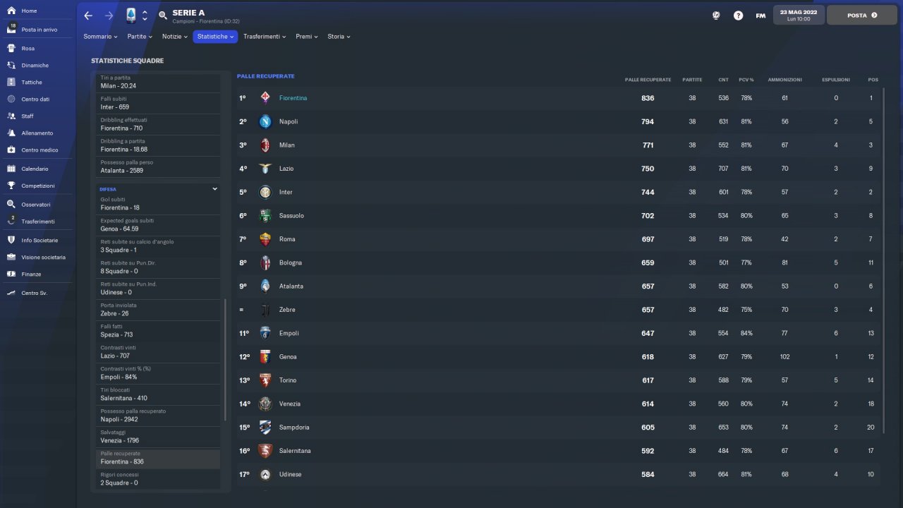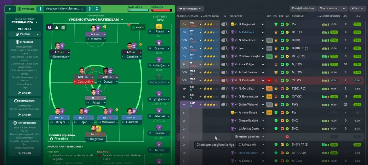 Tactical emulation of Vincenzo Italiano, Fiorentina coach who makes pressing and speed of execution his fundamental principles.