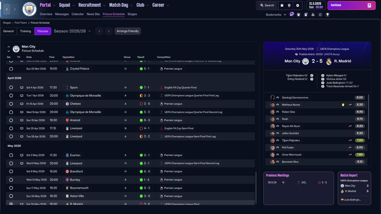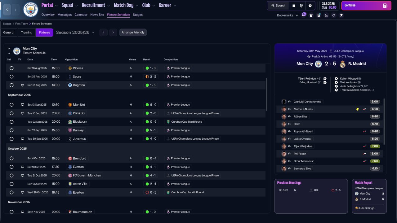 P.S. Somehow, tactics got switched to default in the UCL final while on holiday... Seems like a bug after last game update (as well as bug with "Save game" button)