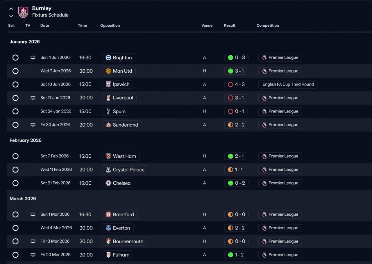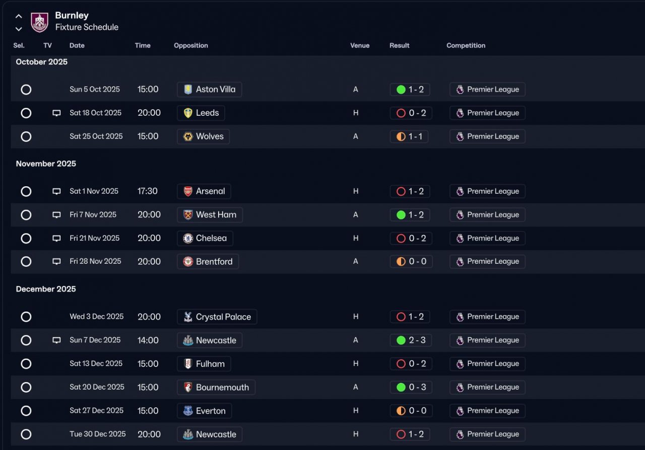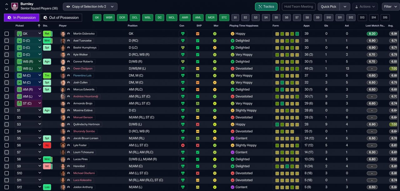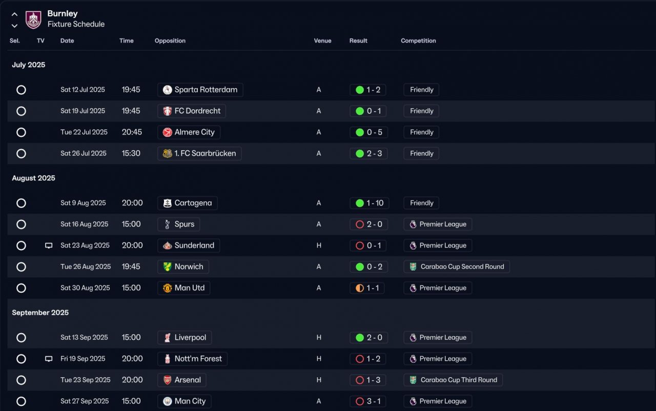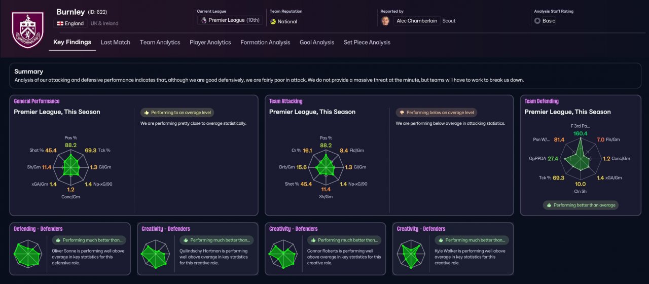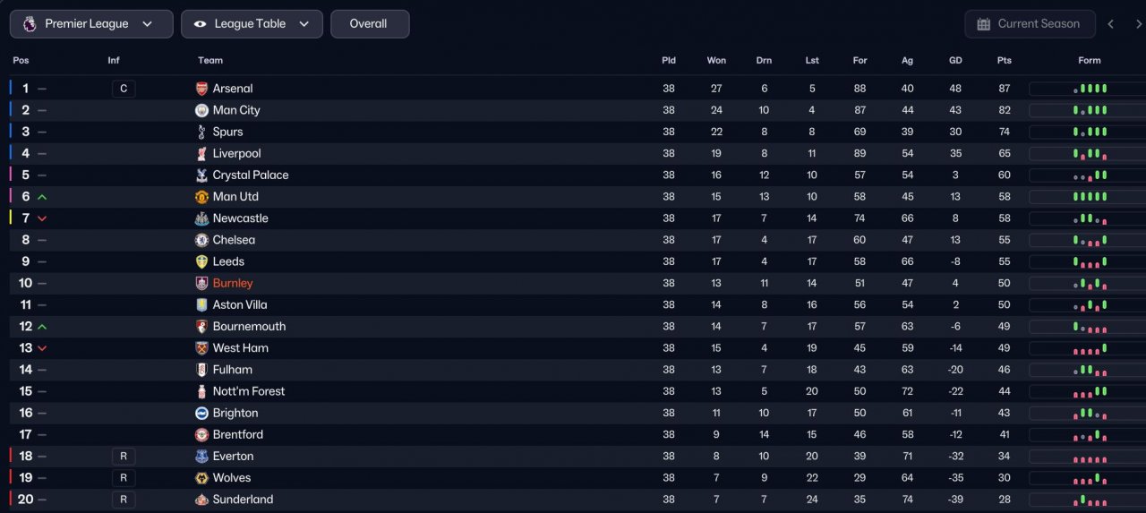 Results were better than I had expected. The 2 league winners, 2 2nd placings, 2 4th placings and Burnley finished 10th in EPL. Defensively it seemed to be pretty solid, which is what I was after. Results below are from Burnley.