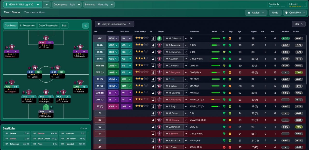 I have looked to make a tactic that I can use when I get a decent lead that will not fatigue the players and not concede many goals. This based on my MDW 343 Standard Bal tactic with no PIs and has reduced most of the TIs back to standard.