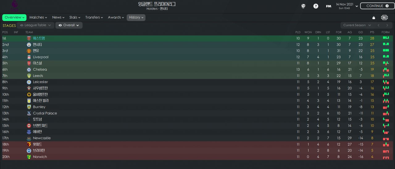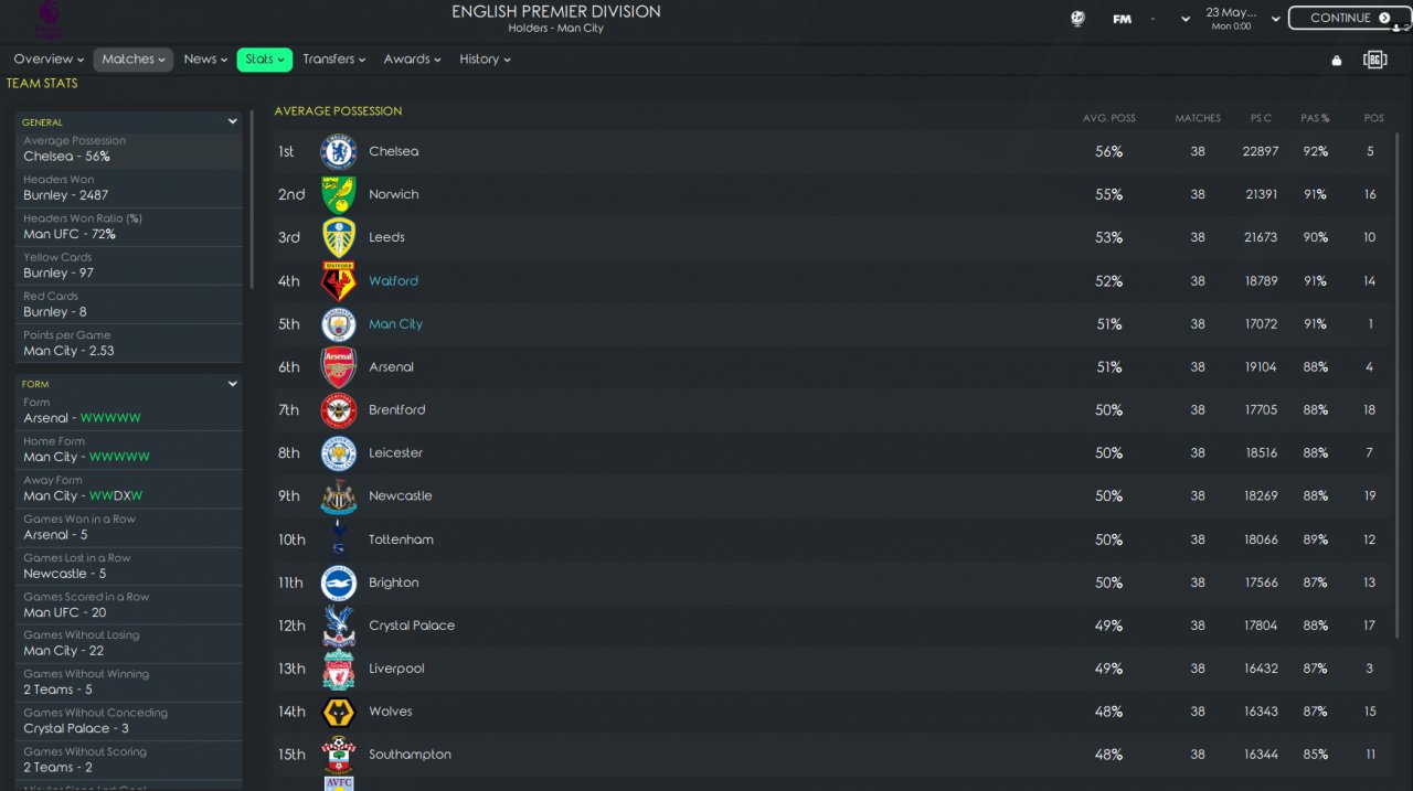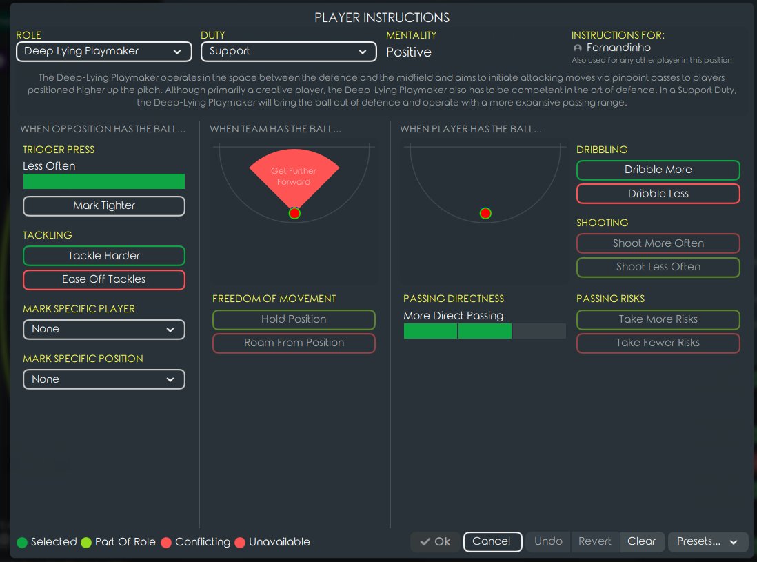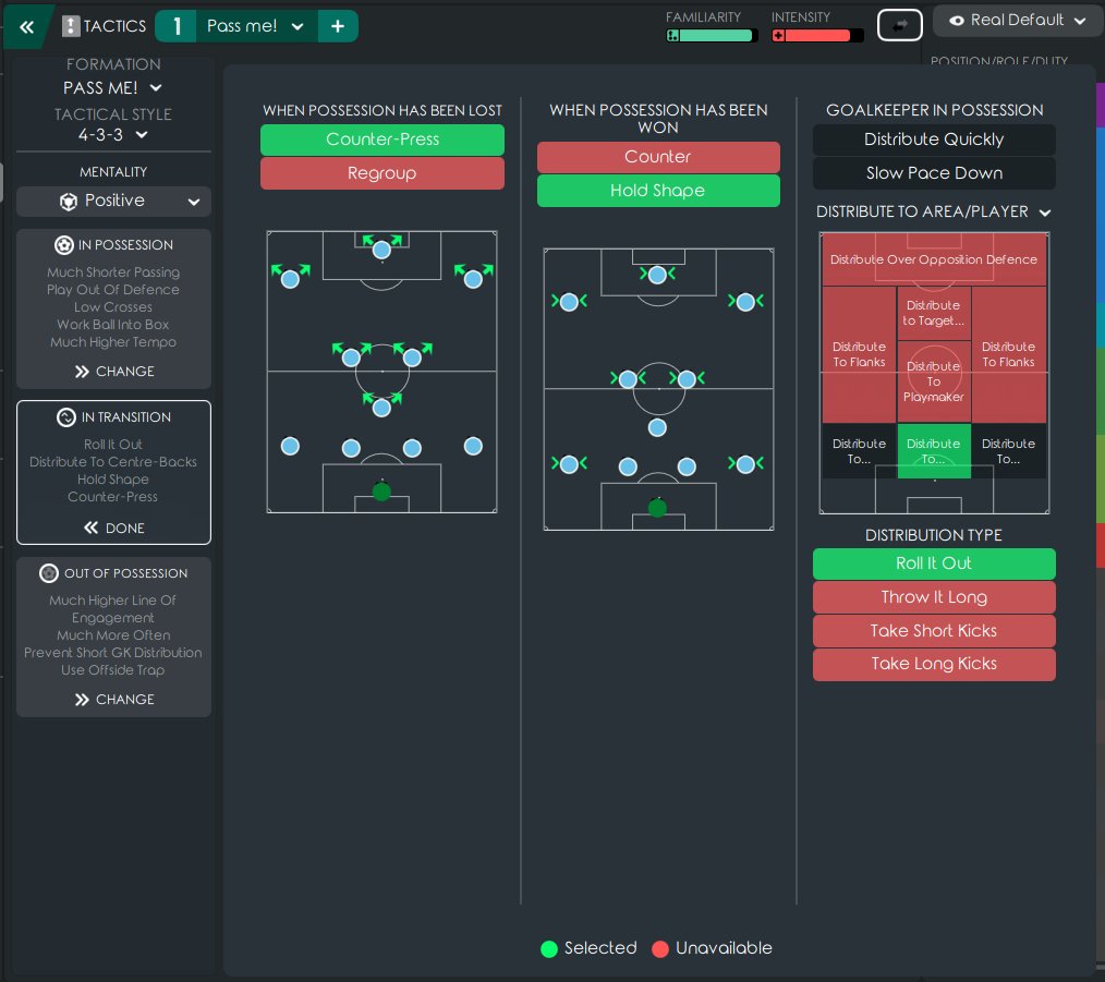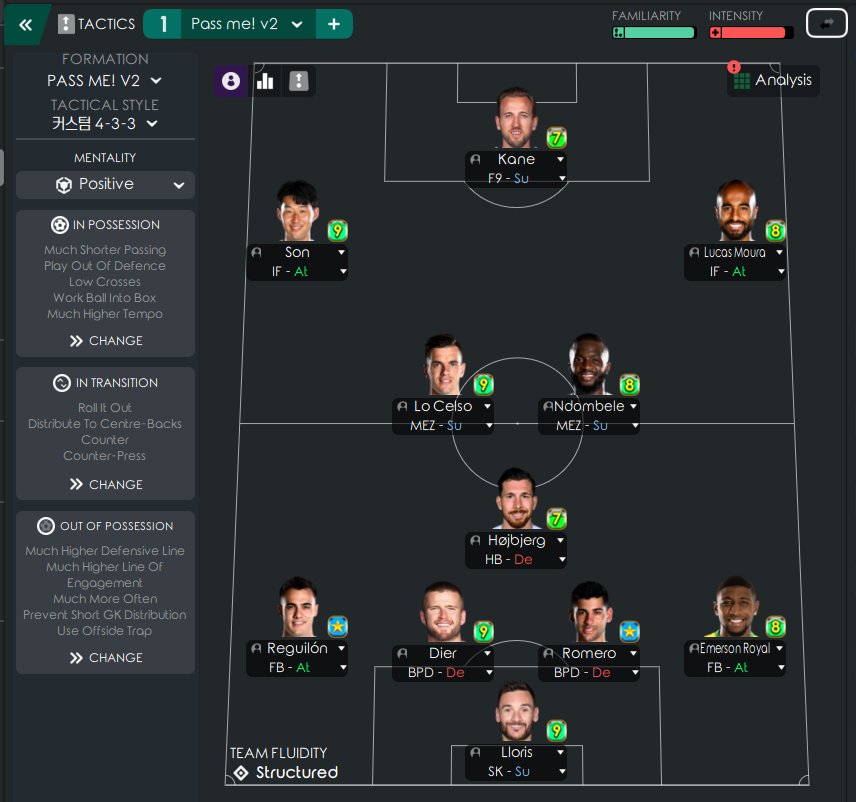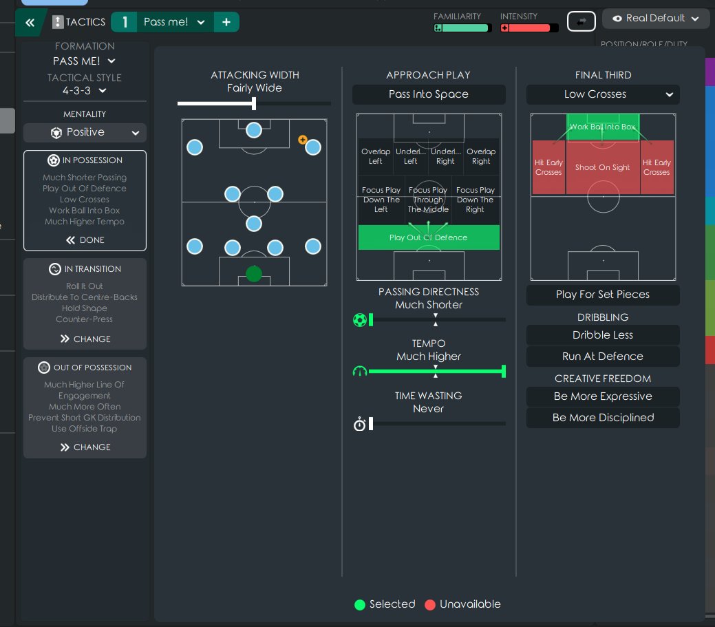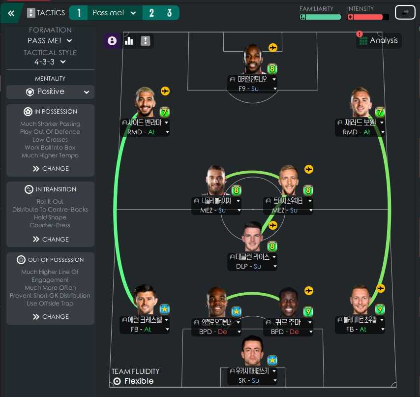 Since I thought 'counterattack' would reduce defensive efficiency, I decided to take a new approach, 'hold shape' along with 'short pass'