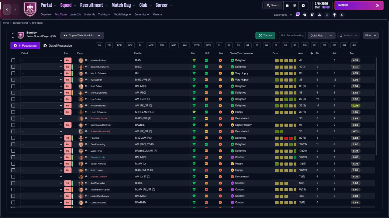 - WBs & AMs Shooting : Standard -> Shoot Less Often