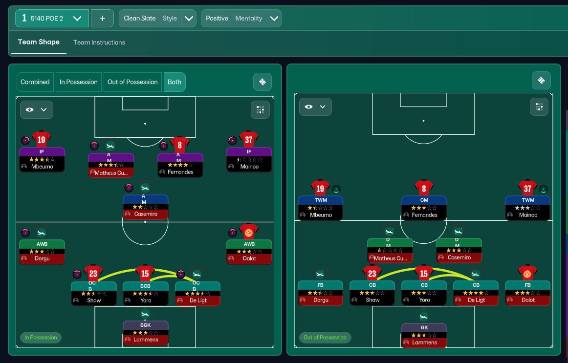 The defensive formation was changed to a double defensive midfielder setup.