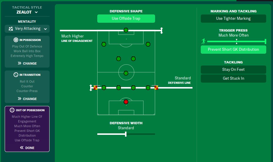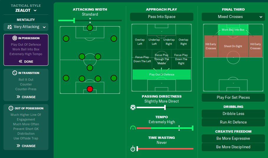 Great tactic Revelation, thanks Zealot, I've had a bit of joy with Aston Villa, unbeaten in 22 games so far. I've changed both IF to IW attack. Striker is PF attack and removed shoot less. In team mentality I've ticked stay on feet, working a charm.