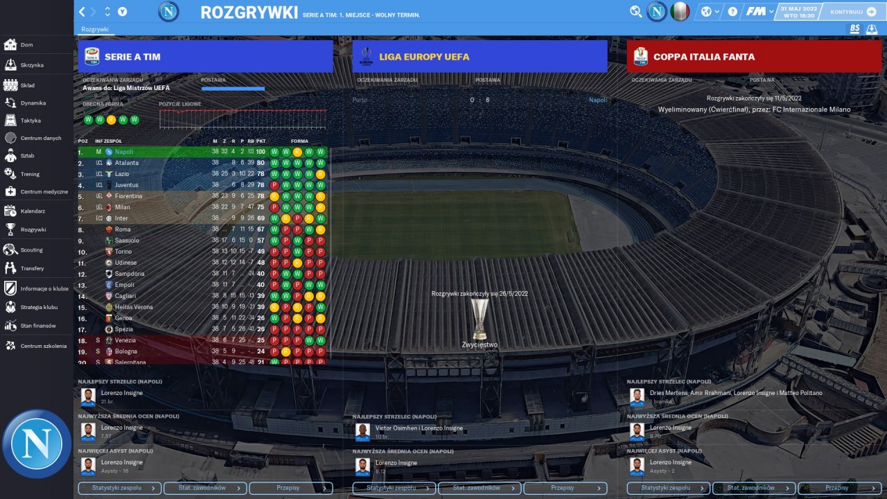 Best tactic yet without a doubt.Won Serie A and Europa League with Napoli.Only downfall was domestic cup where we got spanked in QF by Inter away 4-0(biggest defeat and probably worst game).Well done @Zealot