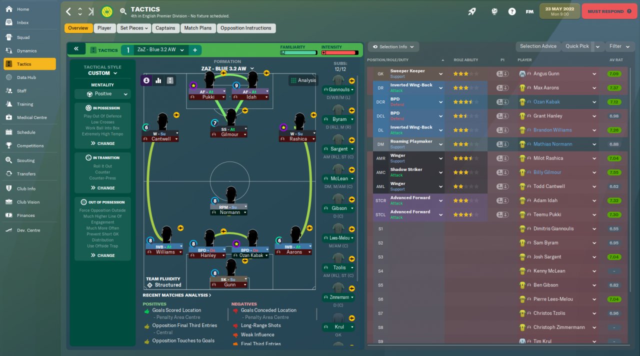 Could you make a 4-2-3-1 from Blue 3.2 AW? For example: shifting AF to DM position as RPM. Would it work? Congratulations on the work and thanks for the always good tactics. Cheers! Expand