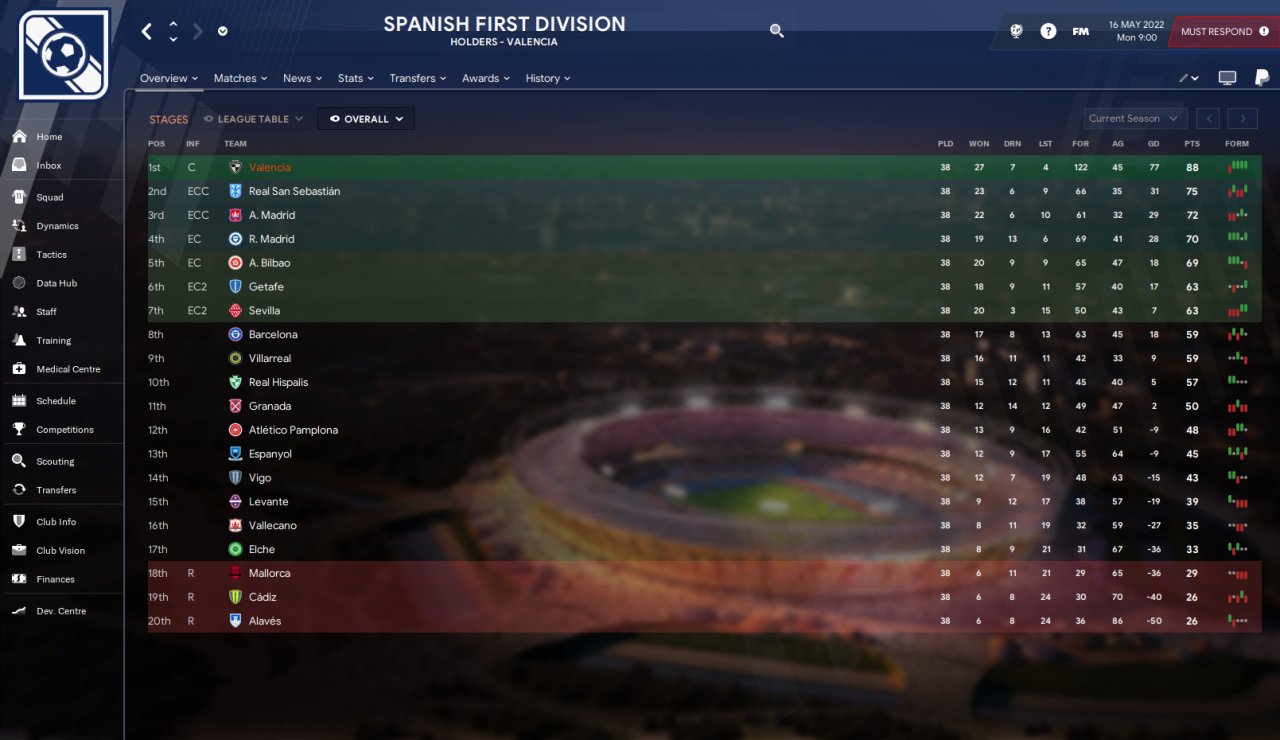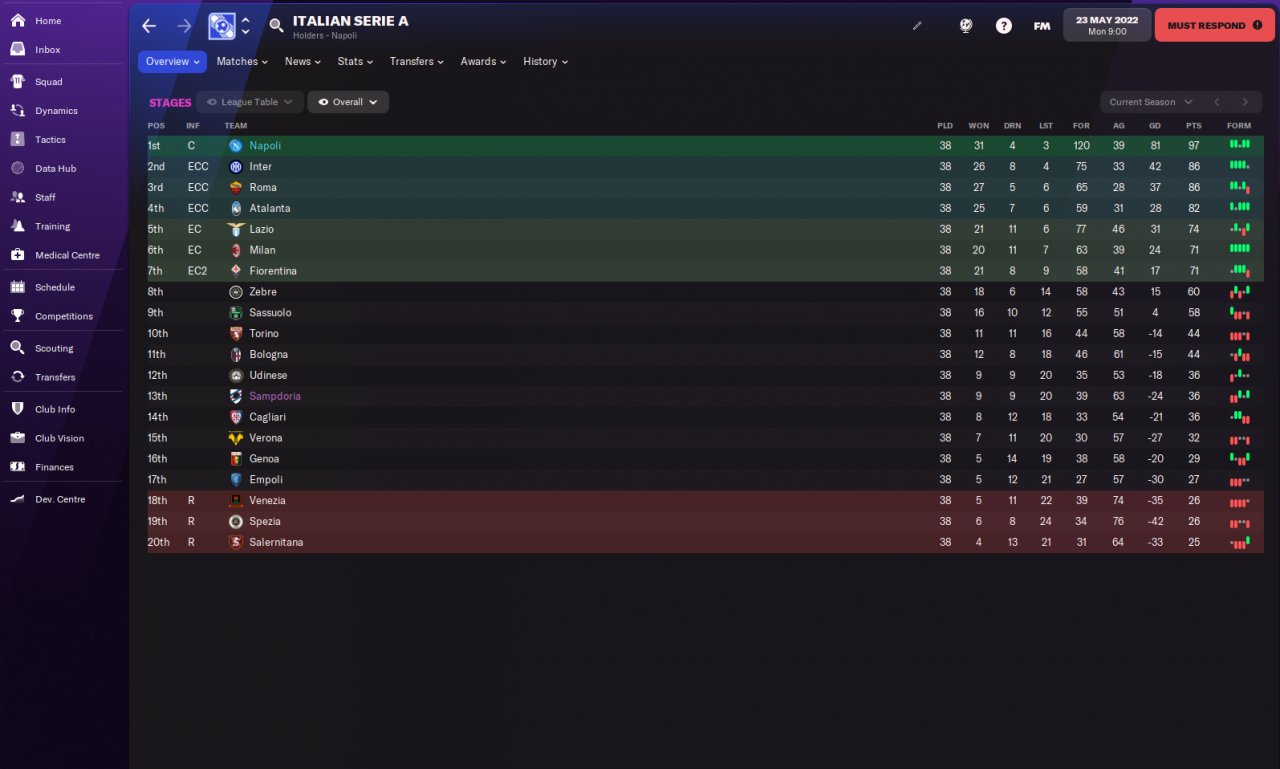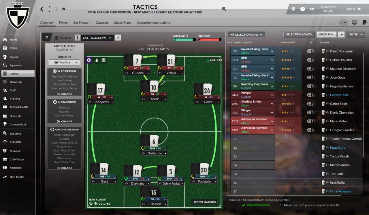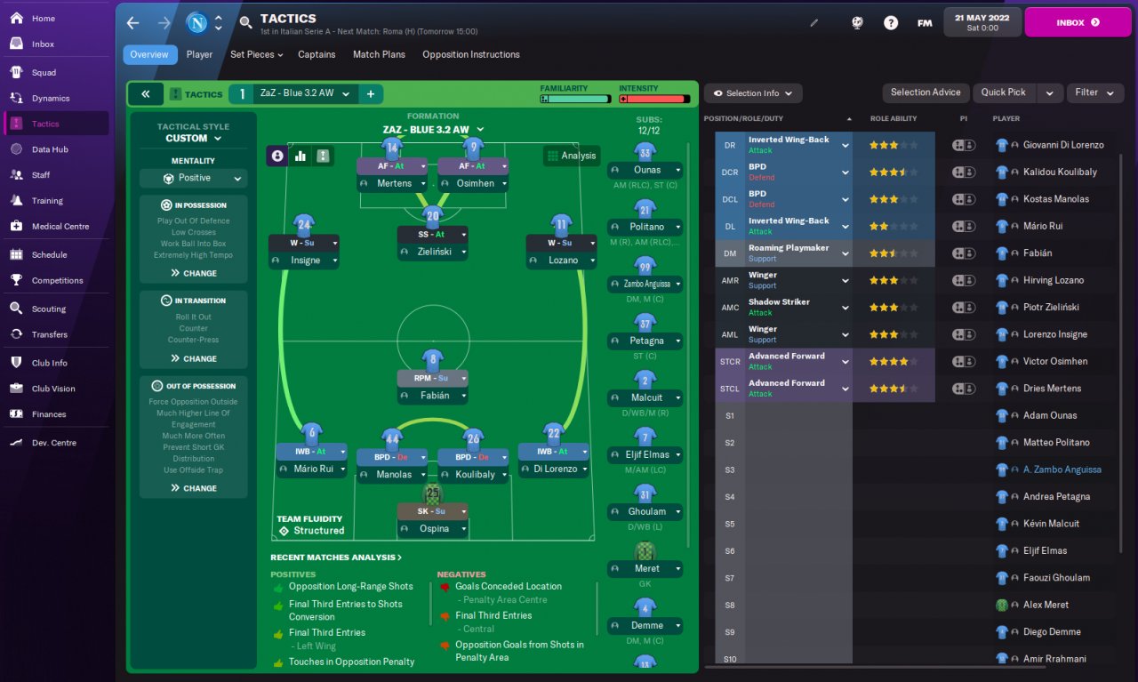 Blue DM for around 20 games then switched to 3.2 normal after that mate. I will change to 3.3 for my 1st season in the Prem league. Im hoping ive signed the right players to survive the prem relegation battle lol