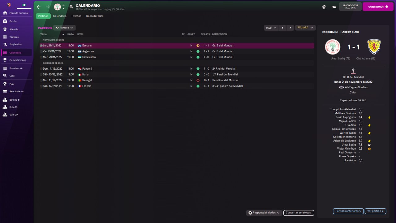 World Cup with Nigeria. We reached the semis and lost to Senegal after beating Argentina and Italy