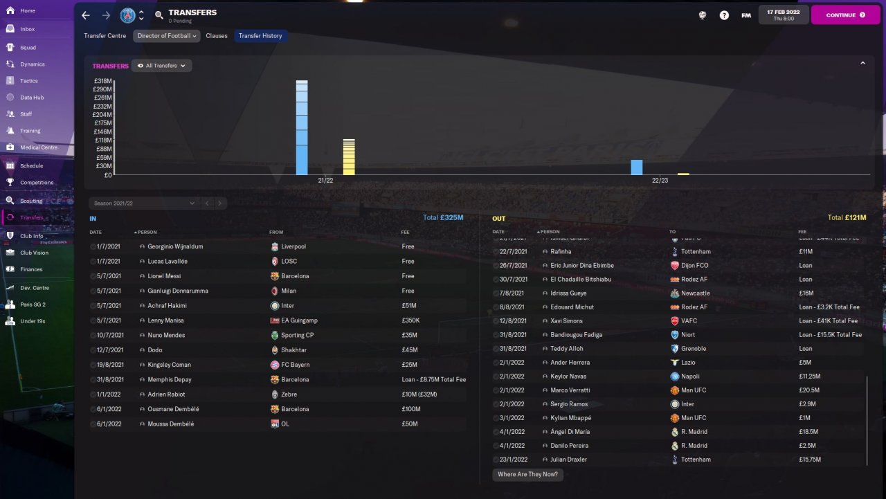 In January I got rid of the oldies excluding Wijnaldum and Messi (No one can afford his wages). I also sold Mbappe as he`d already signed a contract with another club.