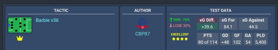 As you may notice, we've been experimenting with the tactic evaluation, trying "Expected Goals or xG" based evaluation instead of "Points" based evaluation.