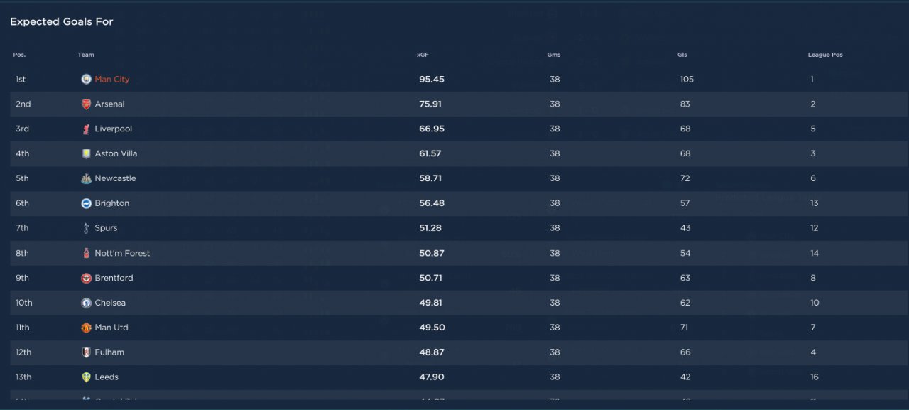 | xG Diff. | xG For | xG Against |