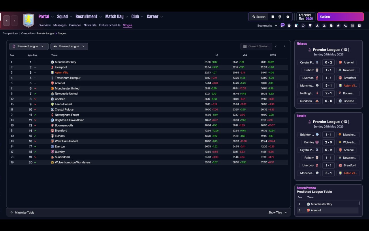 | xG Diff. | xG For | xG Against |