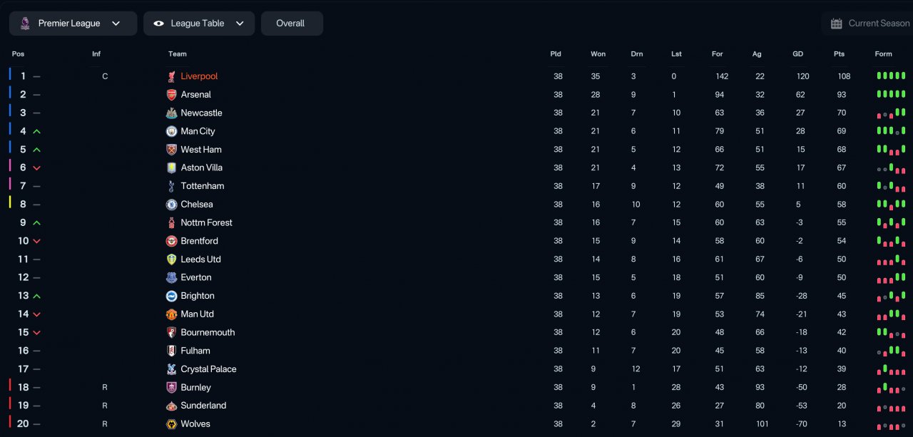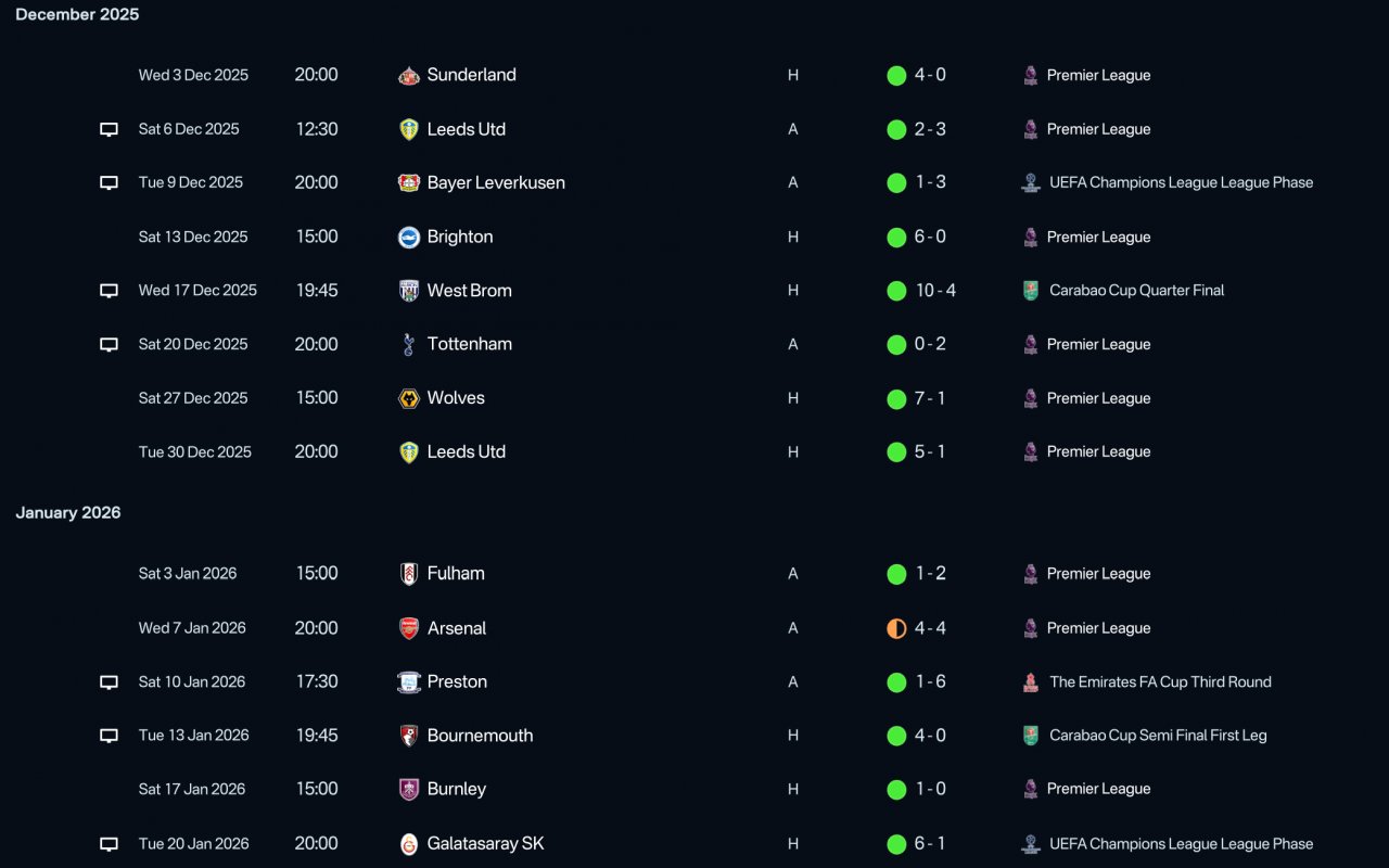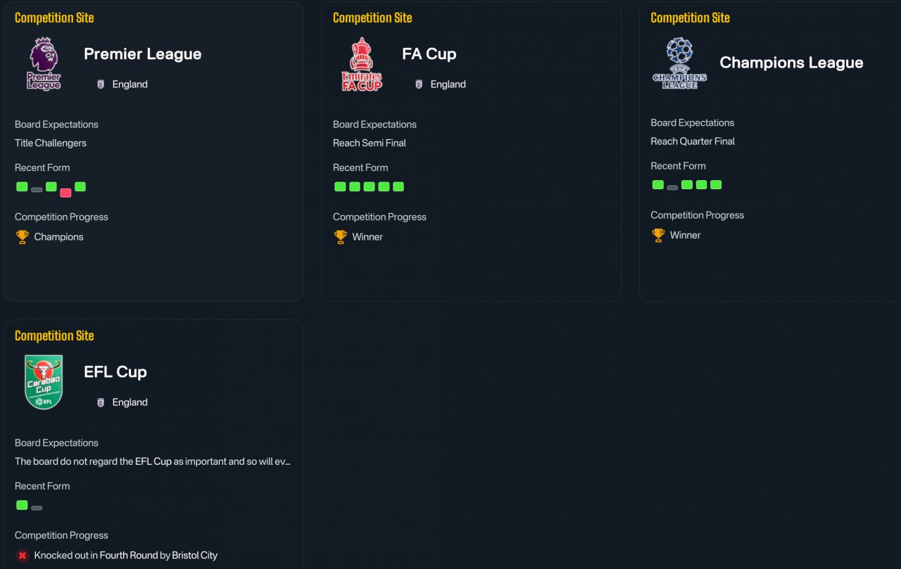 Remarkable results with all teams tested with. Especially the Liverpool season. Undefeated in the league and won the quintuple.