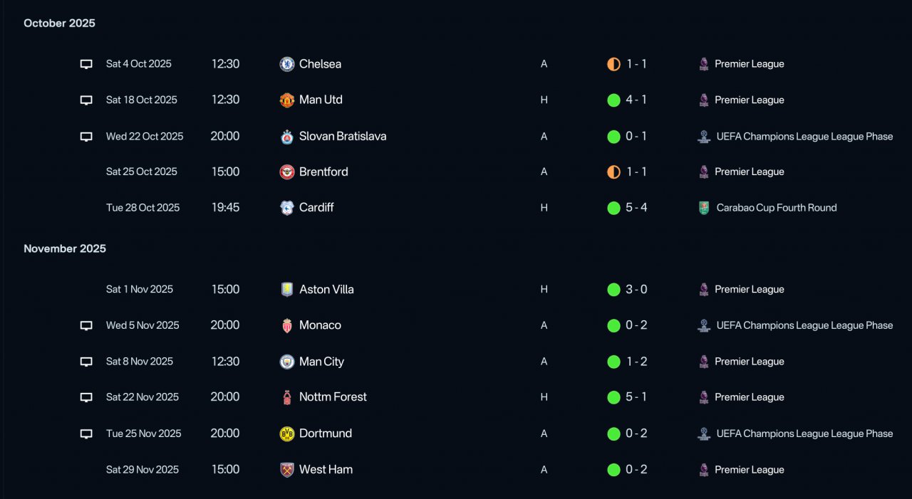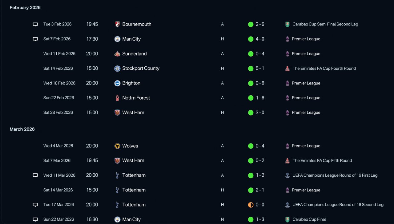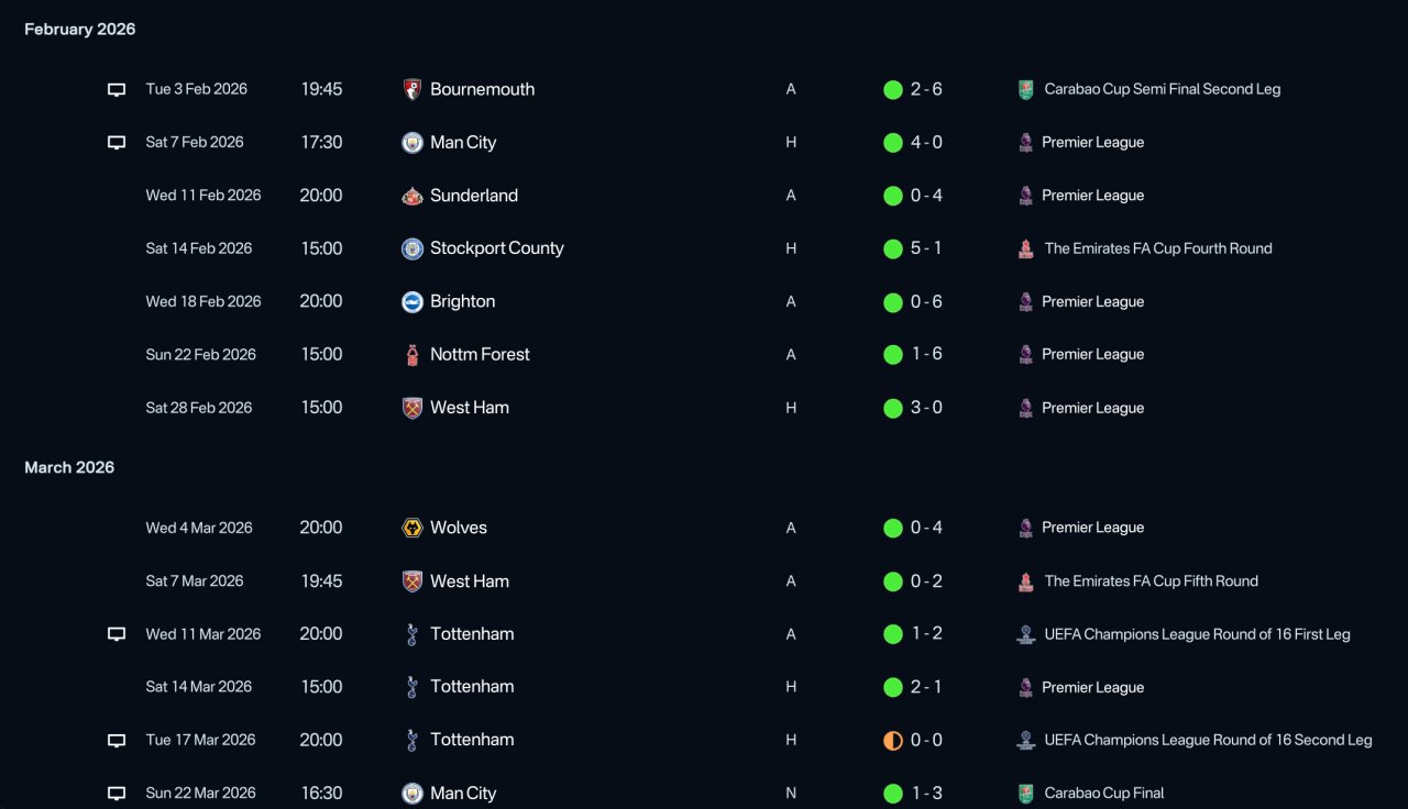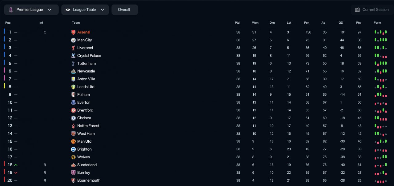 Remarkable results with all teams tested with. Especially the Liverpool season. Undefeated in the league and won the quintuple.