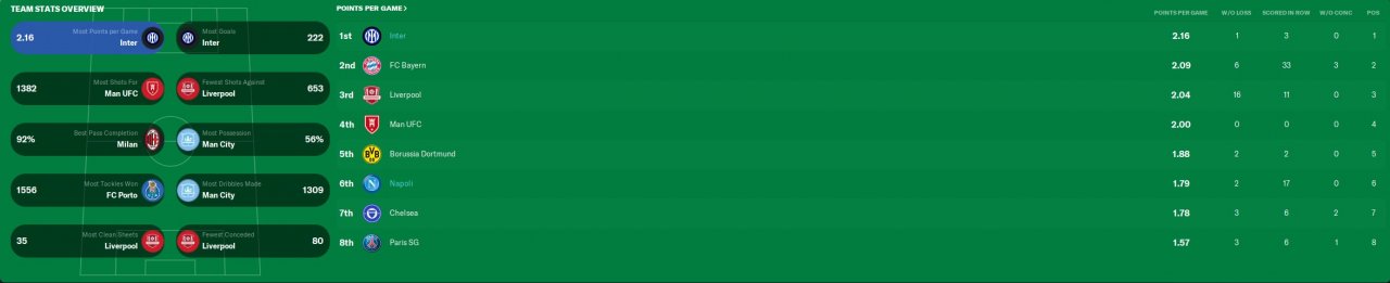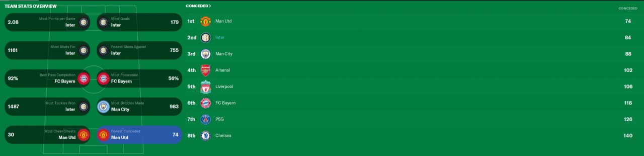 Inter - 2.25 PPG; 209 Goals; 87 Allowed