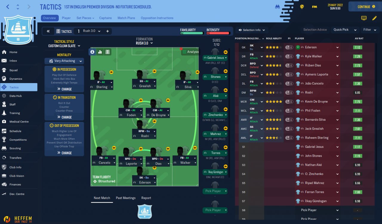 Rush is a very good tactic for Man City. It got me the EPL title and the Champions League Cup.