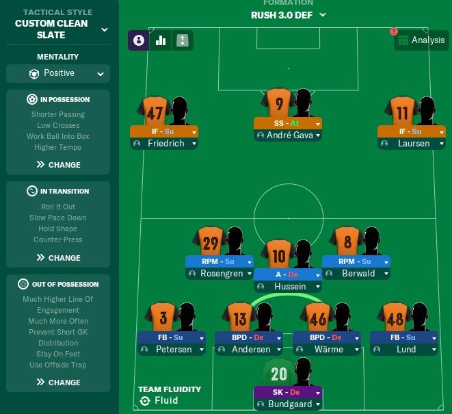 I have uploaded a new version of Rush. This Rush ASYM has been performing very well in my testing league and scoring lots of goals. If you use it in your save switch side depending on where your personnel strength is of course.