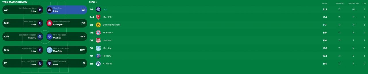 Inter - 232 GF; 112 GA; 2.01 PPG