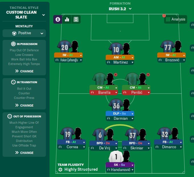 The I have moved almost all roles down to a Sup role if they were on attacking. Adjusted Mentality down to positive with shorter passing and only higher tempo.